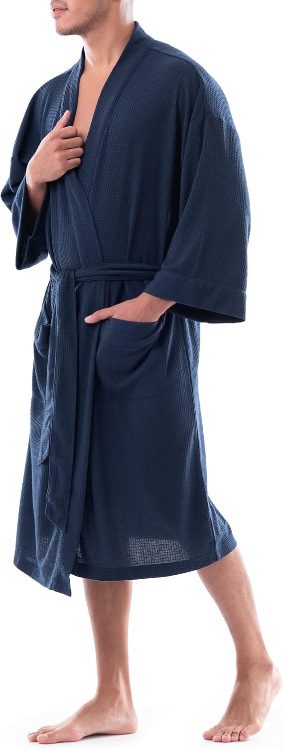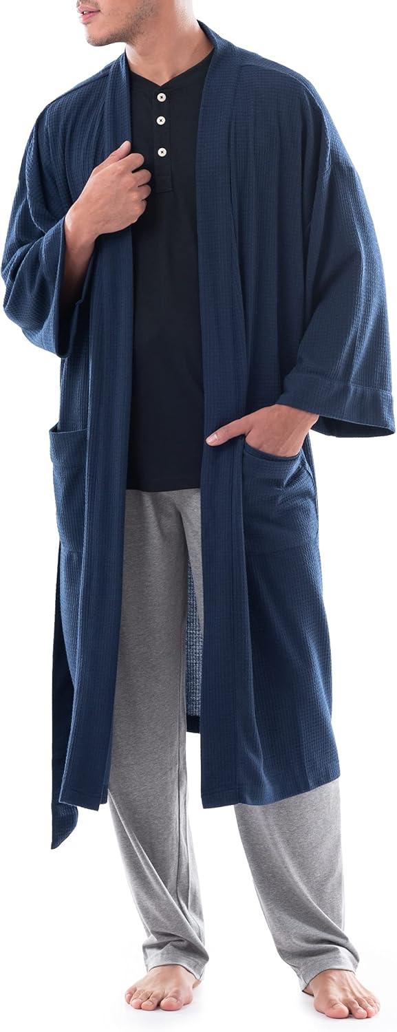 Fruit of the Loom Men’s Waffle Kimono Robe(Navy Blue)