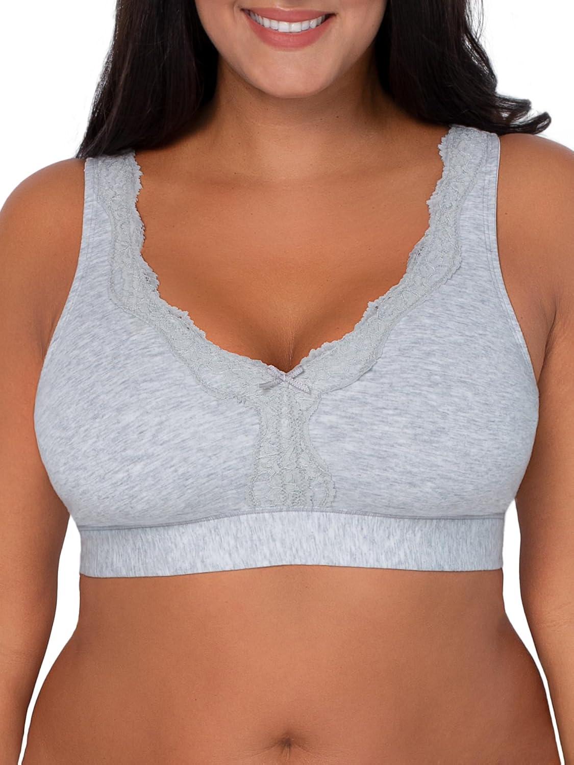 The Fruit of the Loom Women’s Full Coverage Wireless Cotton Bralette 2 Pack is designed with comfy, stretch cotton fabric. All-day comfort you can’t live without, this bralette without an underwire is made to shape and support. Double lined, full coverage, wireless cups give you lasting support throughout the day. This wire-free bra has an elastic under band that provides a flexible fit and added support. The best wireless bra, it’s complete with comfortable, extra wide straps, a smoothing leotard style back and a soft, adjustable back closure so you can customize your fit. Lace trim and center bow finish the look.