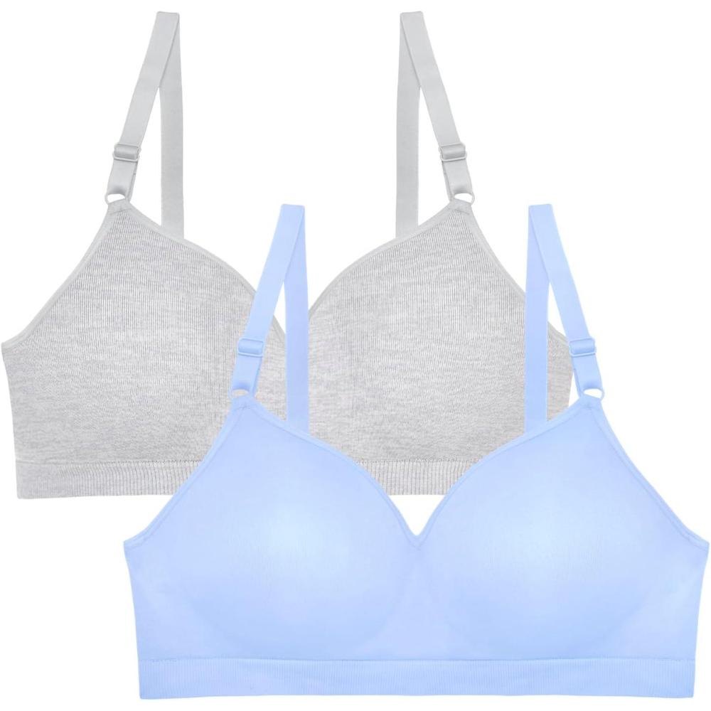 Fruit of the Loom Women's 2-Pack Seamless Wire-Free Push-Up Bra – Soft, Comfortable & Supportive(Deja Blue/Grey Heather)