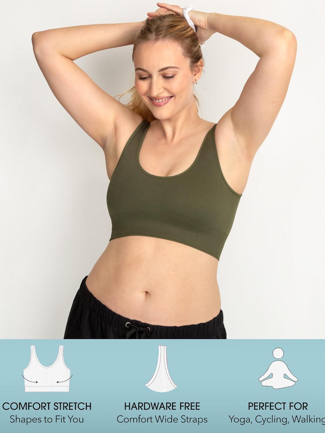 Fruit of the Loom Women’s 3-Pack Seamless Full-Coverage Wireless Bra(Desert Dusk/Olive Night/Black)