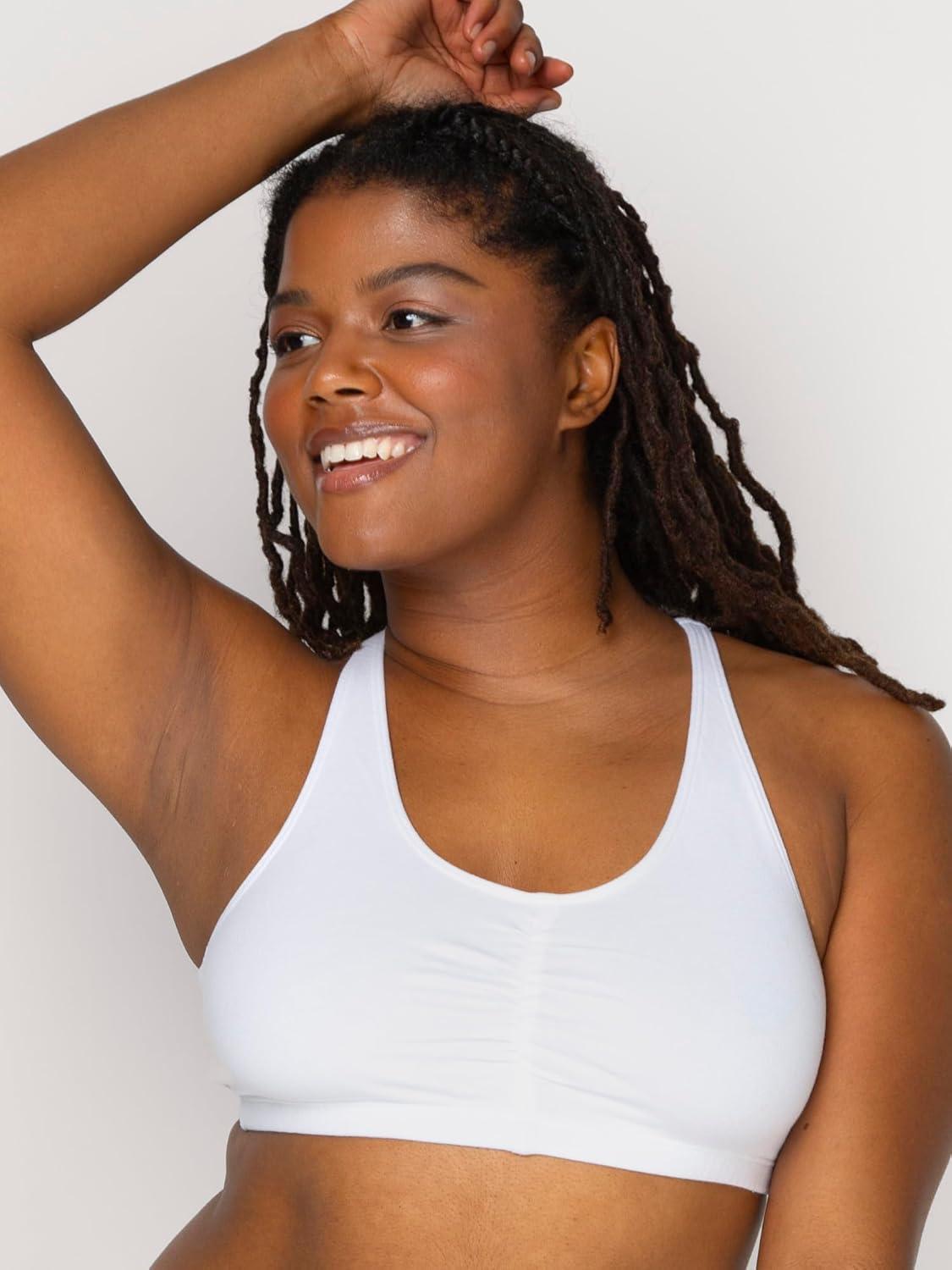 Fruit of the Loom Women’s Adjustable Shirred Front Racerback Sports Bra, Multi Pack Options(Heather Grey/White/Black Hue)