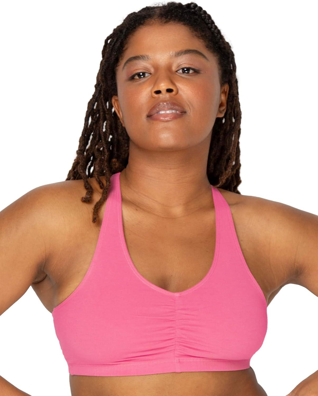 Fruit of the Loom Women’s Adjustable Shirred Front Racerback Sports Bra, Multi Pack Options(Neon Pink Heather/White/Grey)
