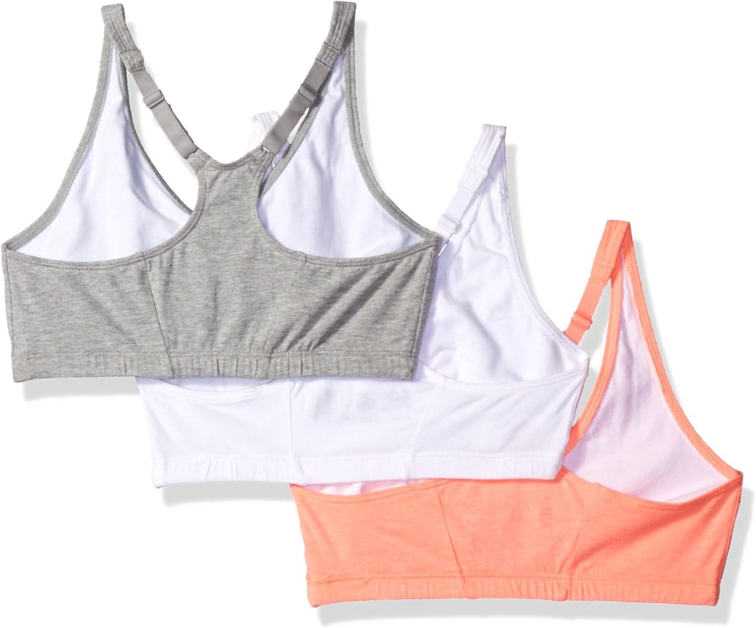 Fruit of the Loom Women's Adjustable Shirred Front Racerback Sports Bra, Multi Pack Options(Punchy Peach/White/Grey Heather)