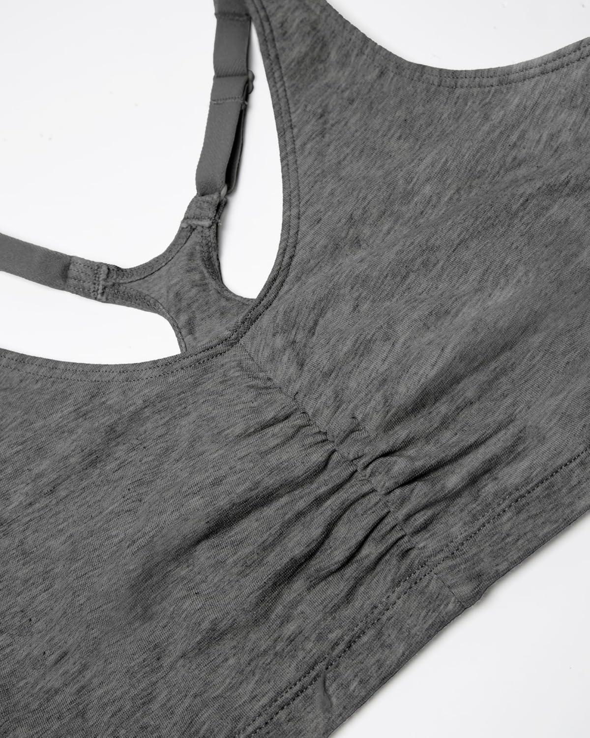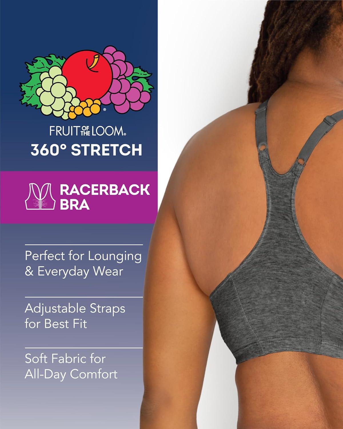 Fruit of the Loom Women’s Adjustable Shirred Front Racerback Sports Bra, Multi Pack Options(Heather Grey/White/Black/Heather Grey/White/Black 6-pack)