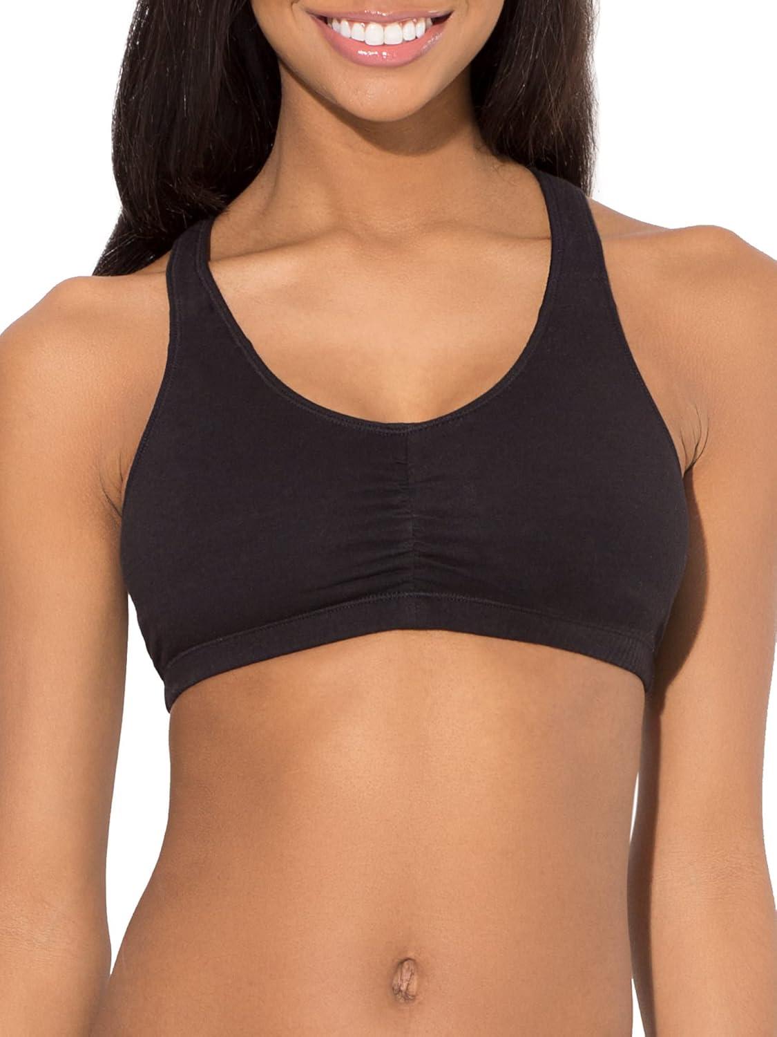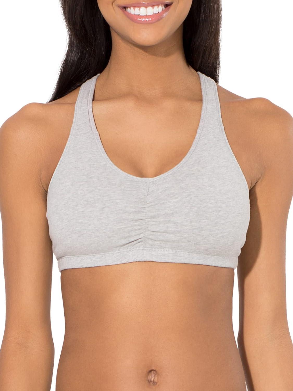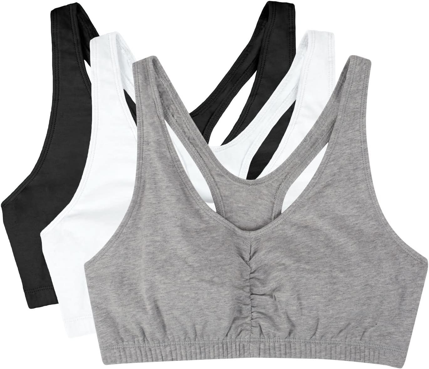 Fruit of the Loom Women’s Adjustable Shirred Front Racerback Sports Bra, Multi Pack Options(White/Heather Grey/Black Hue)