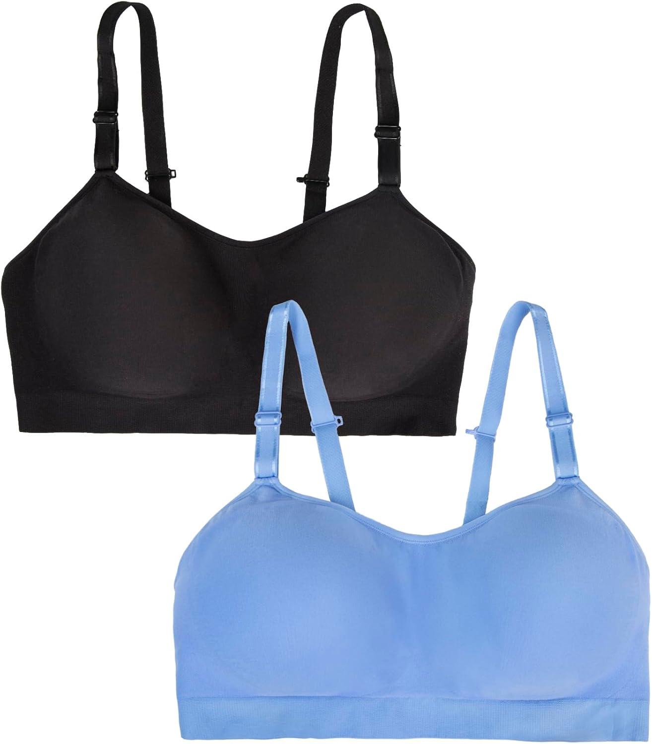 Fruit of The Loom Womens All-Day 360 Stretch Wireless Bra – Seamless Design(Cornflower Blue/Black Hue)