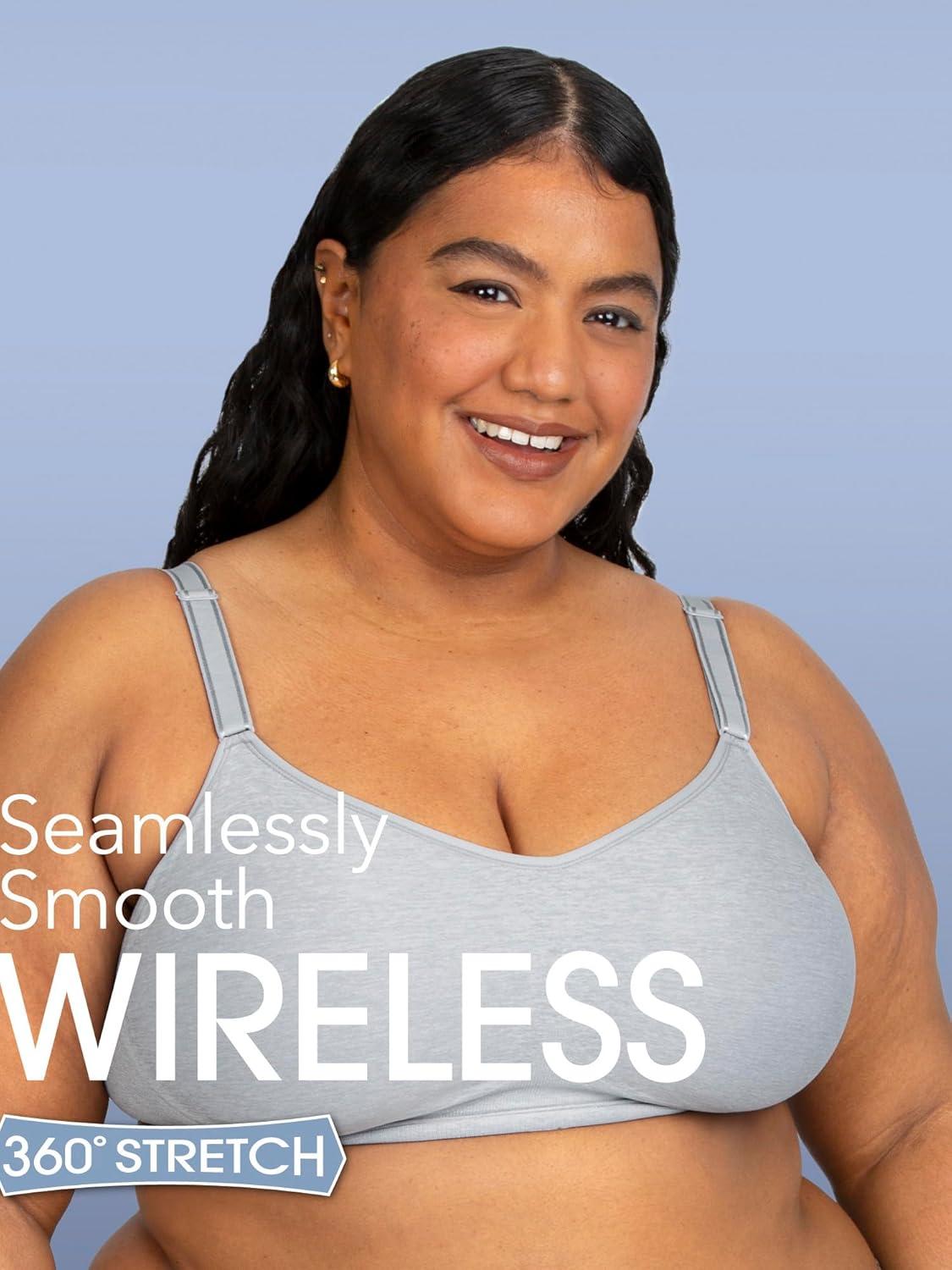 Fruit of The Loom Womens All-Day 360 Stretch Wireless Bra - Seamless Design(Rose Shadow/Grey Heather)