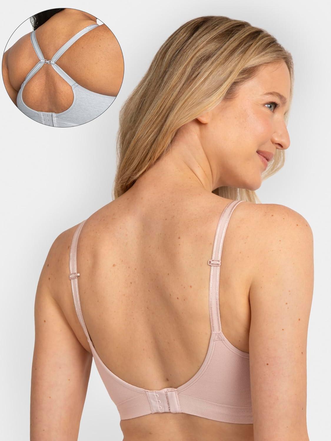Fruit of The Loom Womens All-Day 360 Stretch Wireless Bra – Seamless Design(Rose Shadow/Grey Heather)