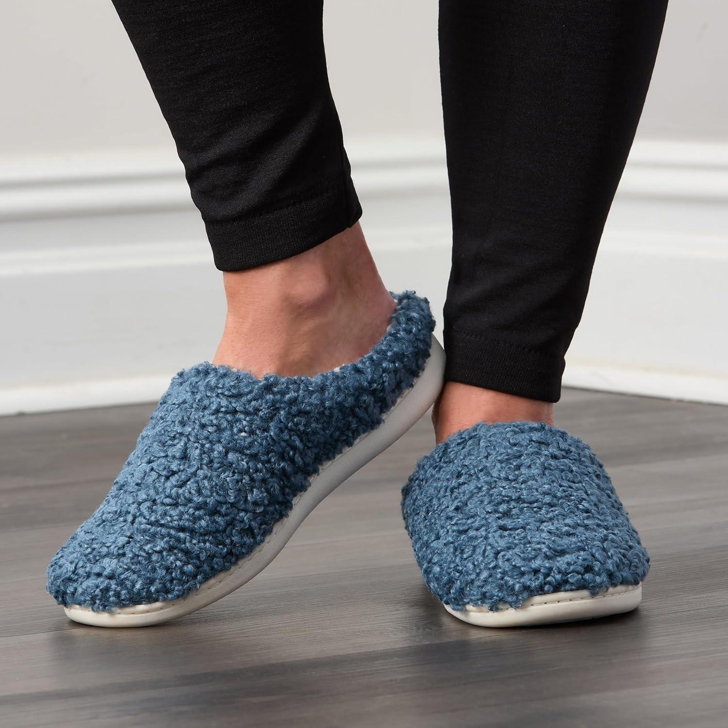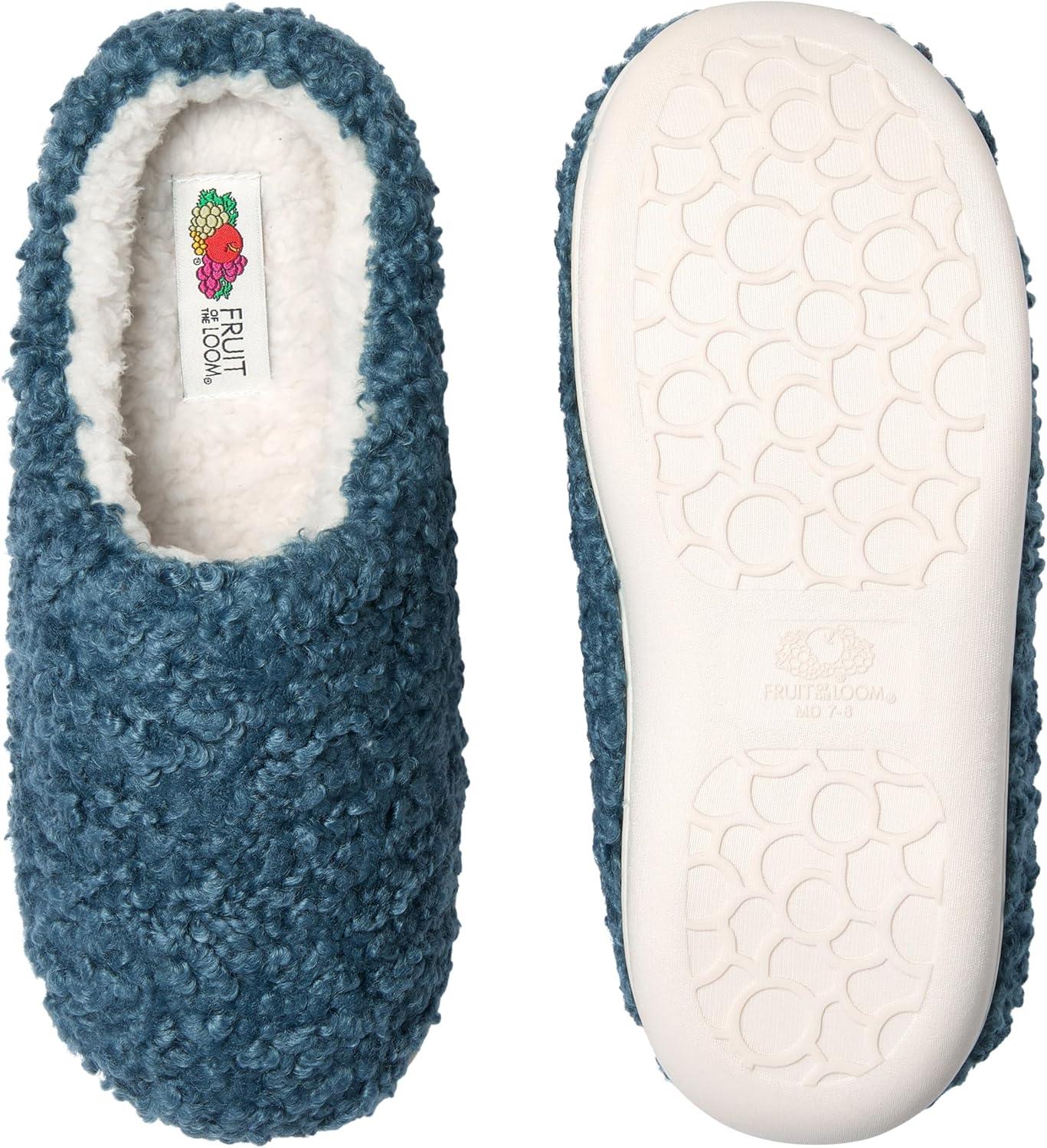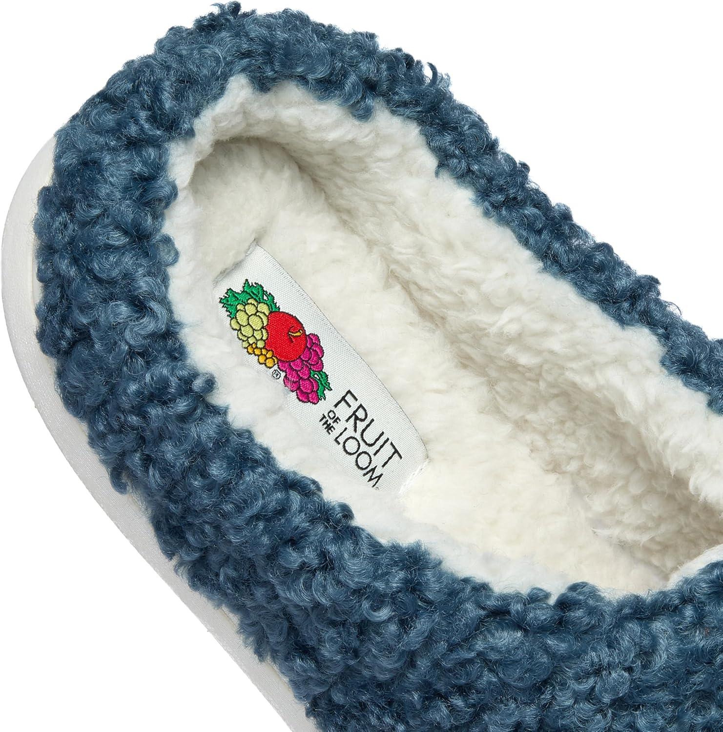 Fruit of the Loom Women's Berber Slippers - Fuzzy Memory Foam, Lightweight Clog, Indoor/Outdoor, Zapatillas de Mujer(Blue)