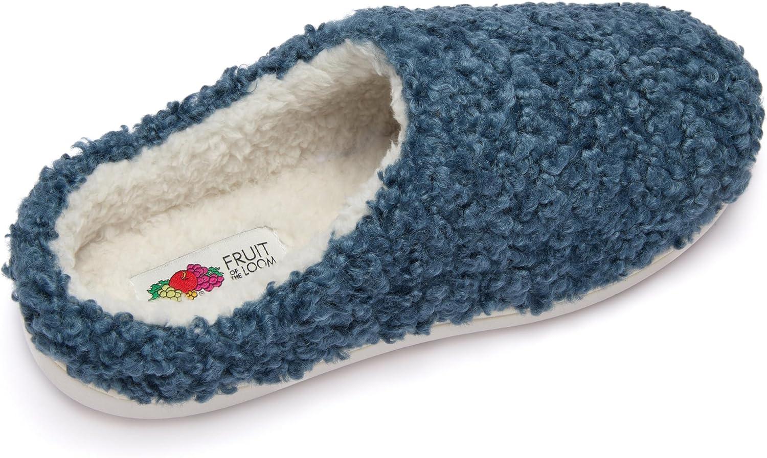 imageFruit of the Loom Womens Berber Slippers  Fuzzy Memory Foam Lightweight Clog IndoorOutdoor Zapatillas de MujerBlue