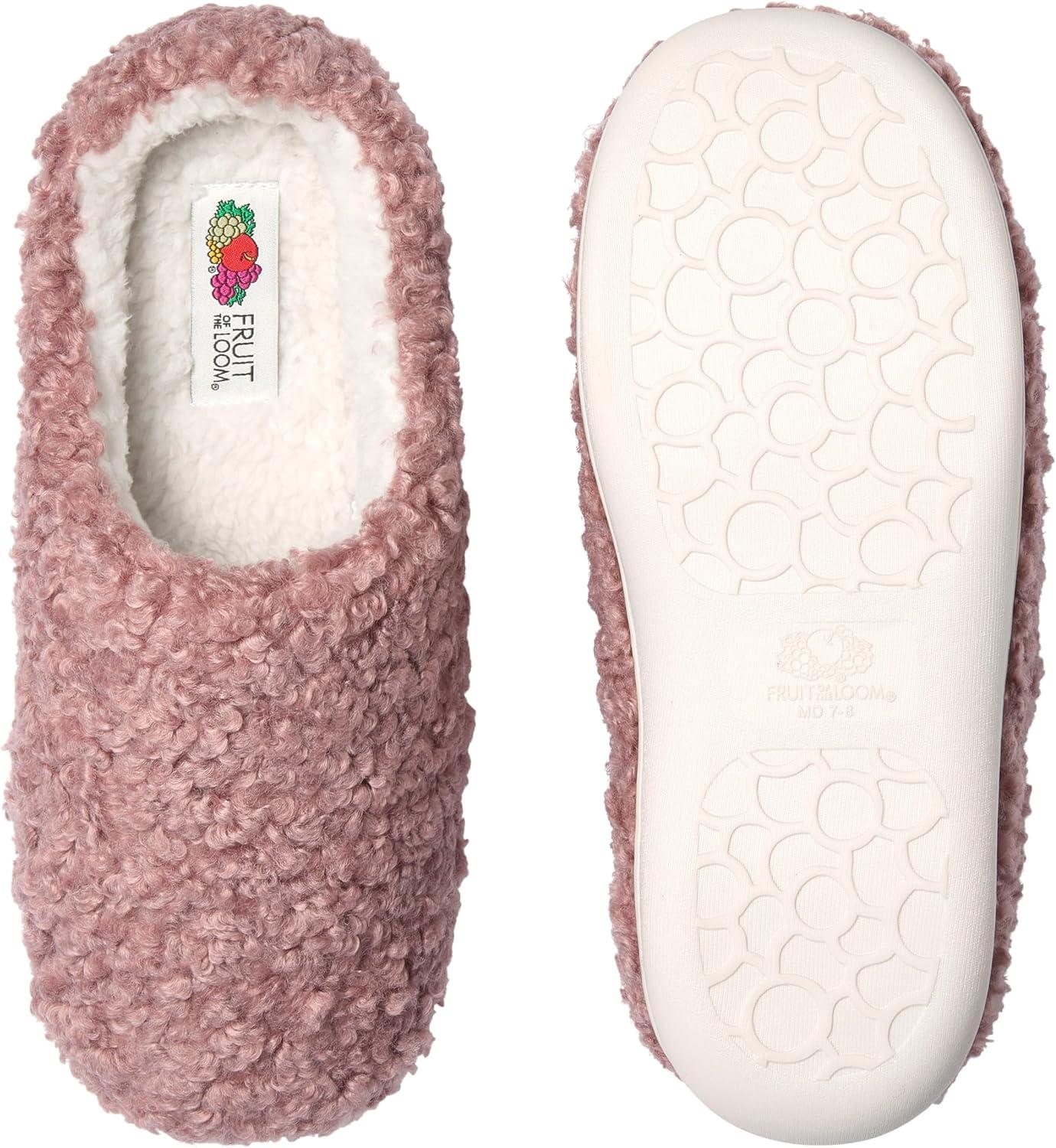 Fruit of the Loom Women's Berber Slippers - Fuzzy Memory Foam, Lightweight Clog, Indoor/Outdoor, Zapatillas de Mujer(Pink)
