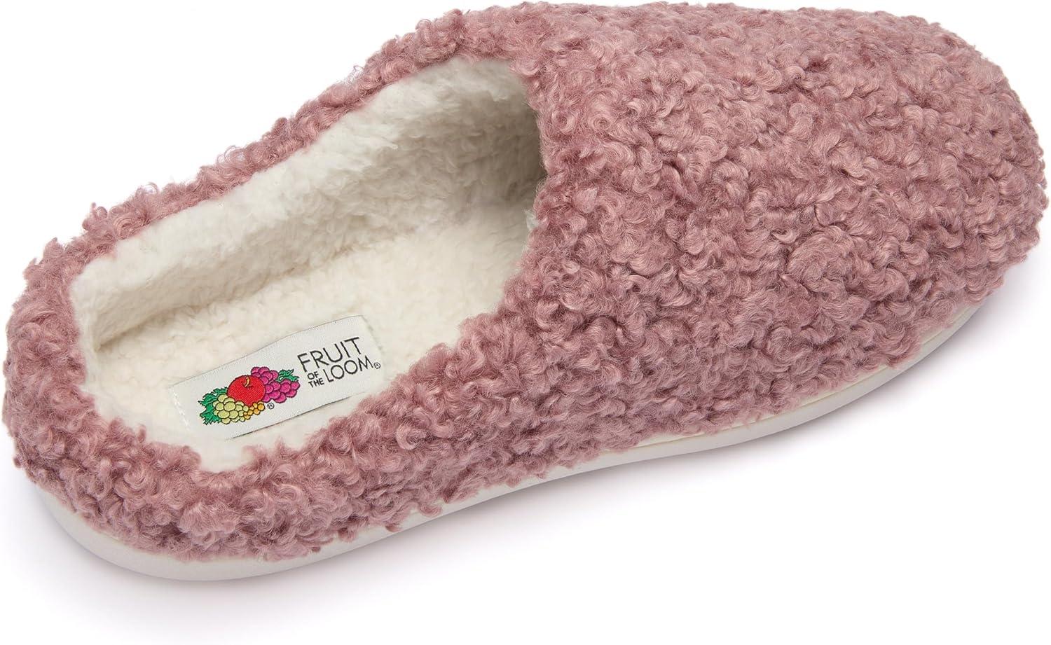 imageFruit of the Loom Womens Berber Slippers  Fuzzy Memory Foam Lightweight Clog IndoorOutdoor Zapatillas de MujerPink