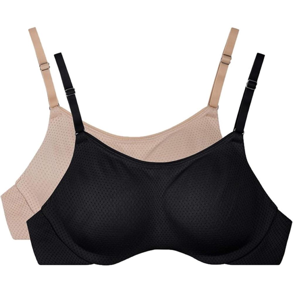 Fruit of the Loom Women’s Breathable Cami Bra with Convertible Straps(2 Pack – Beige/Black)