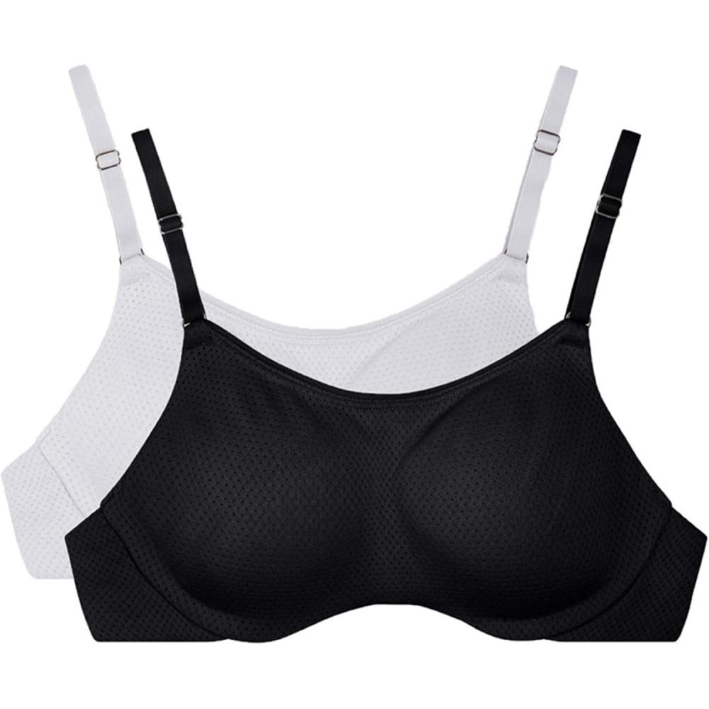 Fruit of the Loom Women's Breathable Cami Bra with Convertible Straps(2 Pack - White/Black)