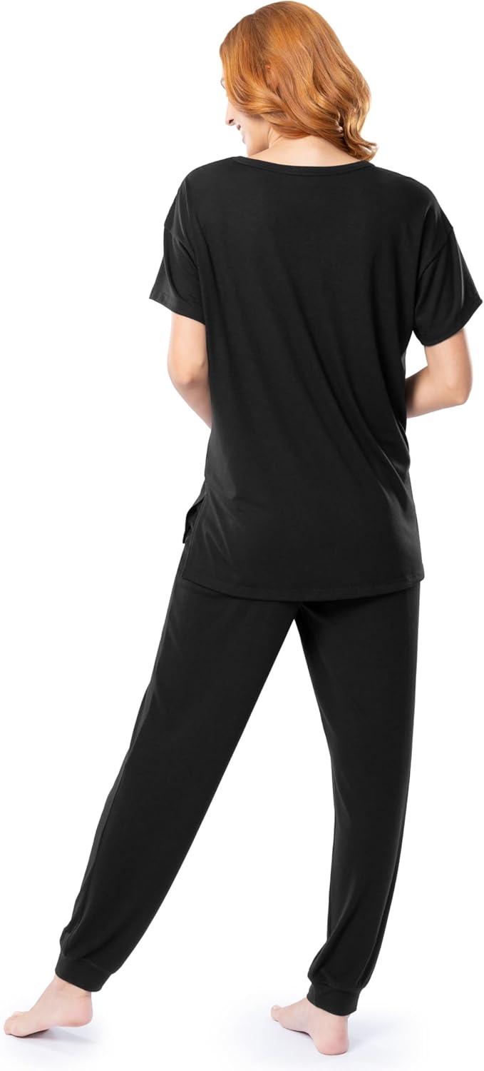 Unwind in comfort and style with the Fruit of the Loom Women's Breathable Top and Jogger Sleep Set. This effortlessly chic pajama set is designed with a wide crewneck and drop-shoulder detail that invites relaxation. The soft, breathable fabric blend keeps you cozy while the high-low hem and side slits add a touch of modern flair. Whether you're enjoying a peaceful night of sleep or a leisurely morning, this sleep set blends comfort, style, and practicality—your perfect go-to for winding down.