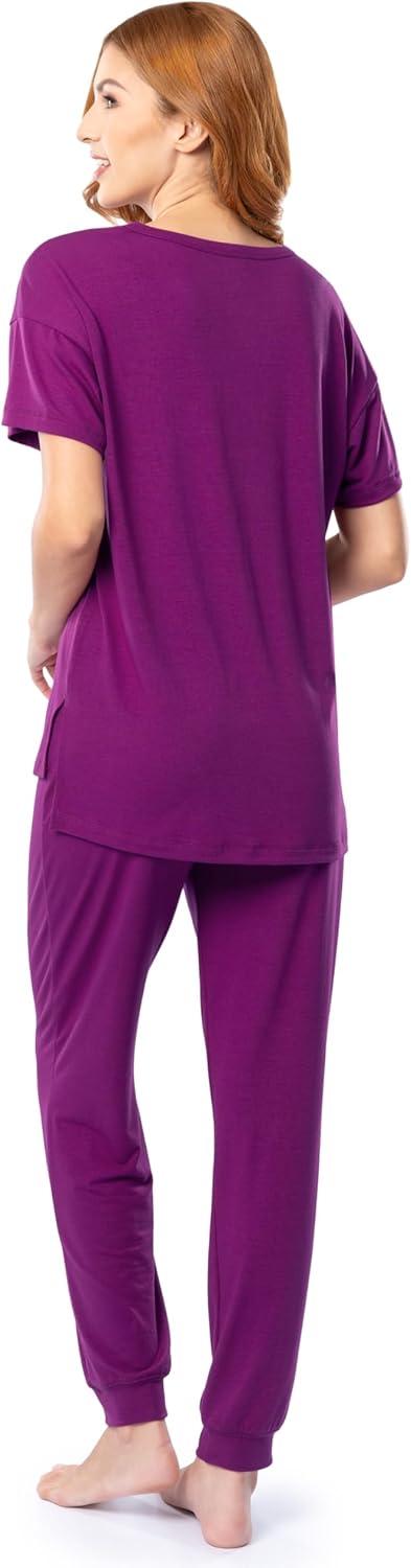 Unwind in comfort and style with the Fruit of the Loom Women's Breathable Top and Jogger Sleep Set. This effortlessly chic pajama set is designed with a wide crewneck and drop-shoulder detail that invites relaxation. The soft, breathable fabric blend keeps you cozy while the high-low hem and side slits add a touch of modern flair. Whether you're enjoying a peaceful night of sleep or a leisurely morning, this sleep set blends comfort, style, and practicality—your perfect go-to for winding down.