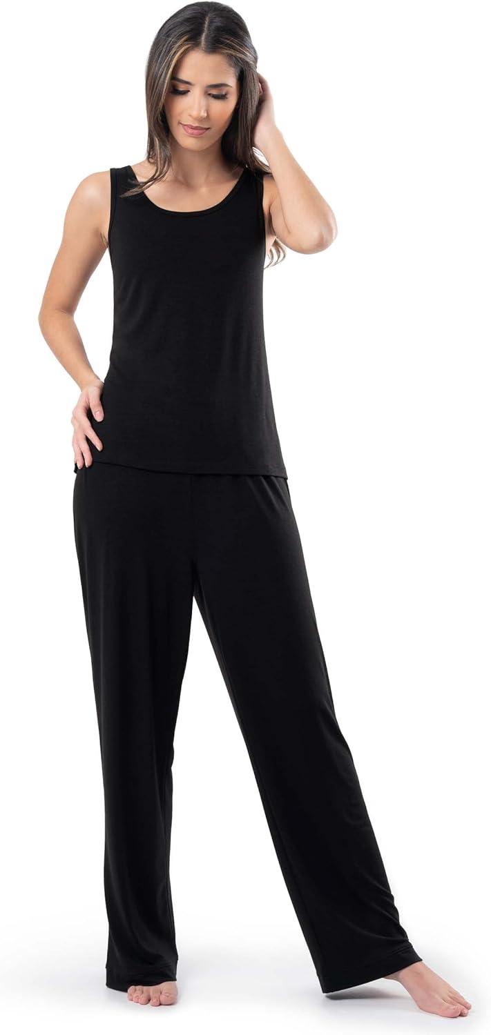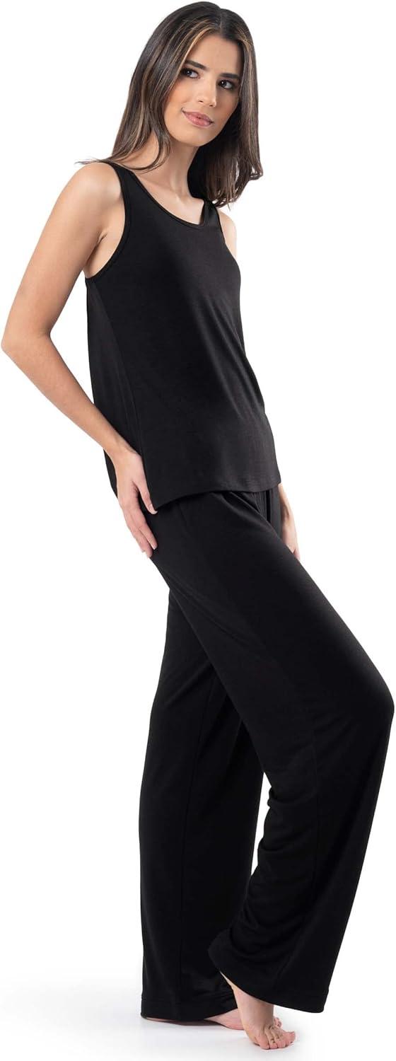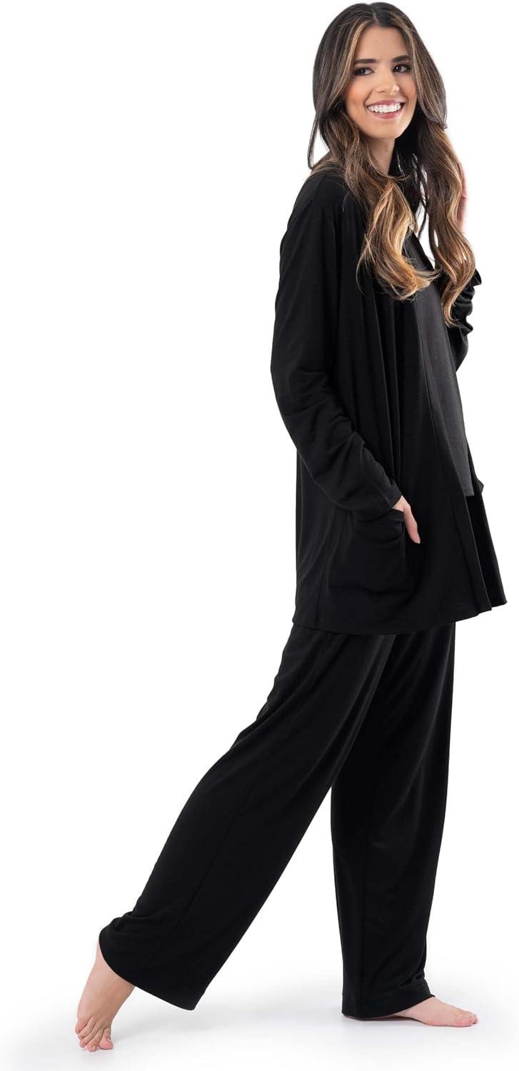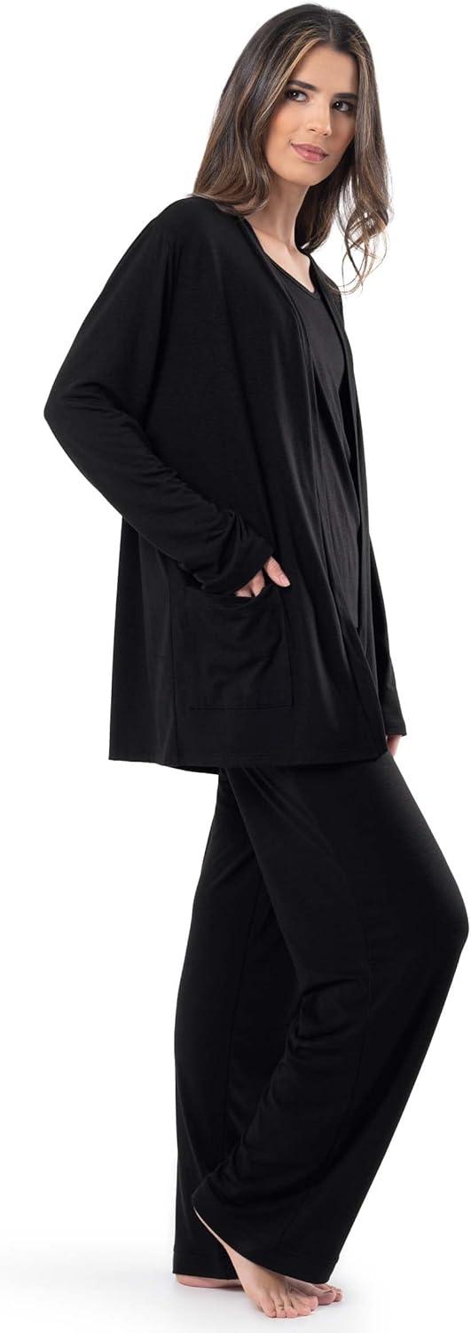 Fruit of the Loom womens Breathable Tank Top, Pant, and Cardigan Sleep Set(Black)