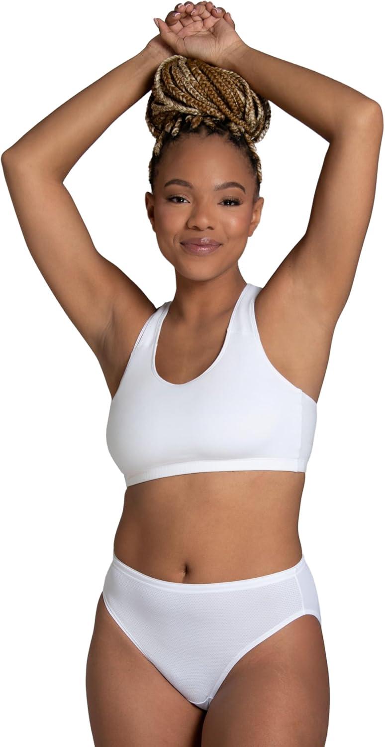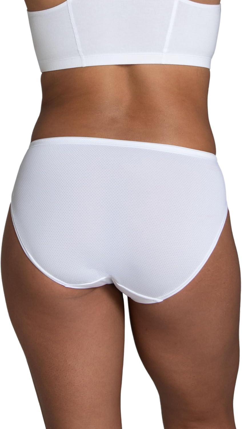 Fruit of the Loom Breathable Cotton-Mesh hipsters are just what you need to help you stay cool and fresh all day long. These panties are made with breathable, cotton-mesh fabric that not only supports the flow of air but wicks away moisture to keep you dry. Not only will these panties keep you feeling your best all day long, they’re designed with comfort in mind. Soft leg bands and a comfort-covered waistband provide added comfort, and as always, our Fruit of the Loom panties are tag free and made with a 100% cotton liner for extra softness. The contemporary hipster silhouette sits slightly above the hips.