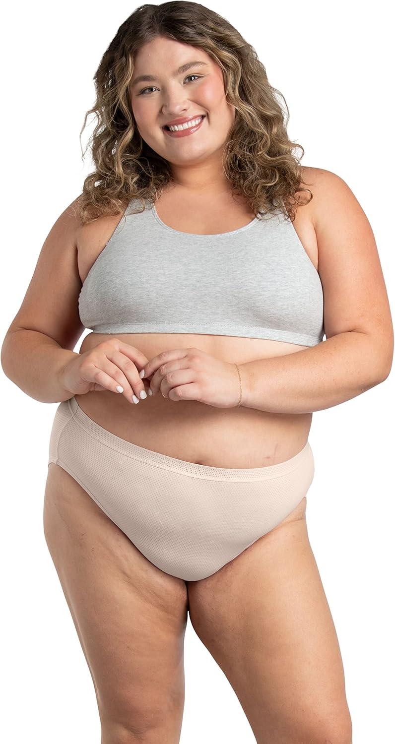 Fruit of the Loom Breathable Cotton-Mesh hipsters are just what you need to help you stay cool and fresh all day long. These panties are made with breathable, cotton-mesh fabric that not only supports the flow of air but wicks away moisture to keep you dry. Not only will these panties keep you feeling your best all day long, they’re designed with comfort in mind. Soft leg bands and a comfort-covered waistband provide added comfort, and as always, our Fruit of the Loom panties are tag free and made with a 100% cotton liner for extra softness. The contemporary hipster silhouette sits slightly above the hips.