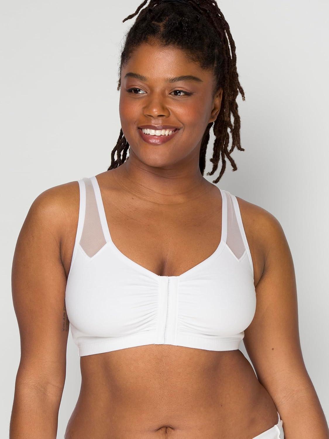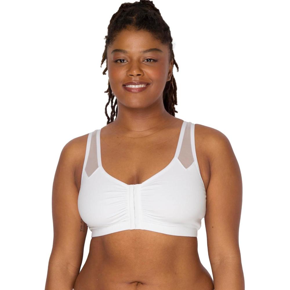 Fruit of the Loom Women's Comfort Front Close Sport Bra with Mesh Straps(White)