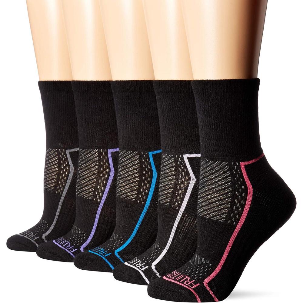 Fruit of the Loom Women’s Coolzone Active Lightweight Cotton Socks(Black/Purple Black/Grey Black/Blue Black/Salmon Black/Pink Black/Lavender)