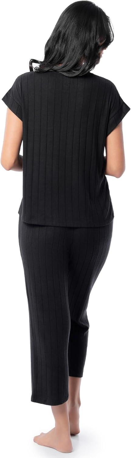 Fruit of the Loom Women’s Dolman Sleeve and Cropped Pant Sleep Set(Black)