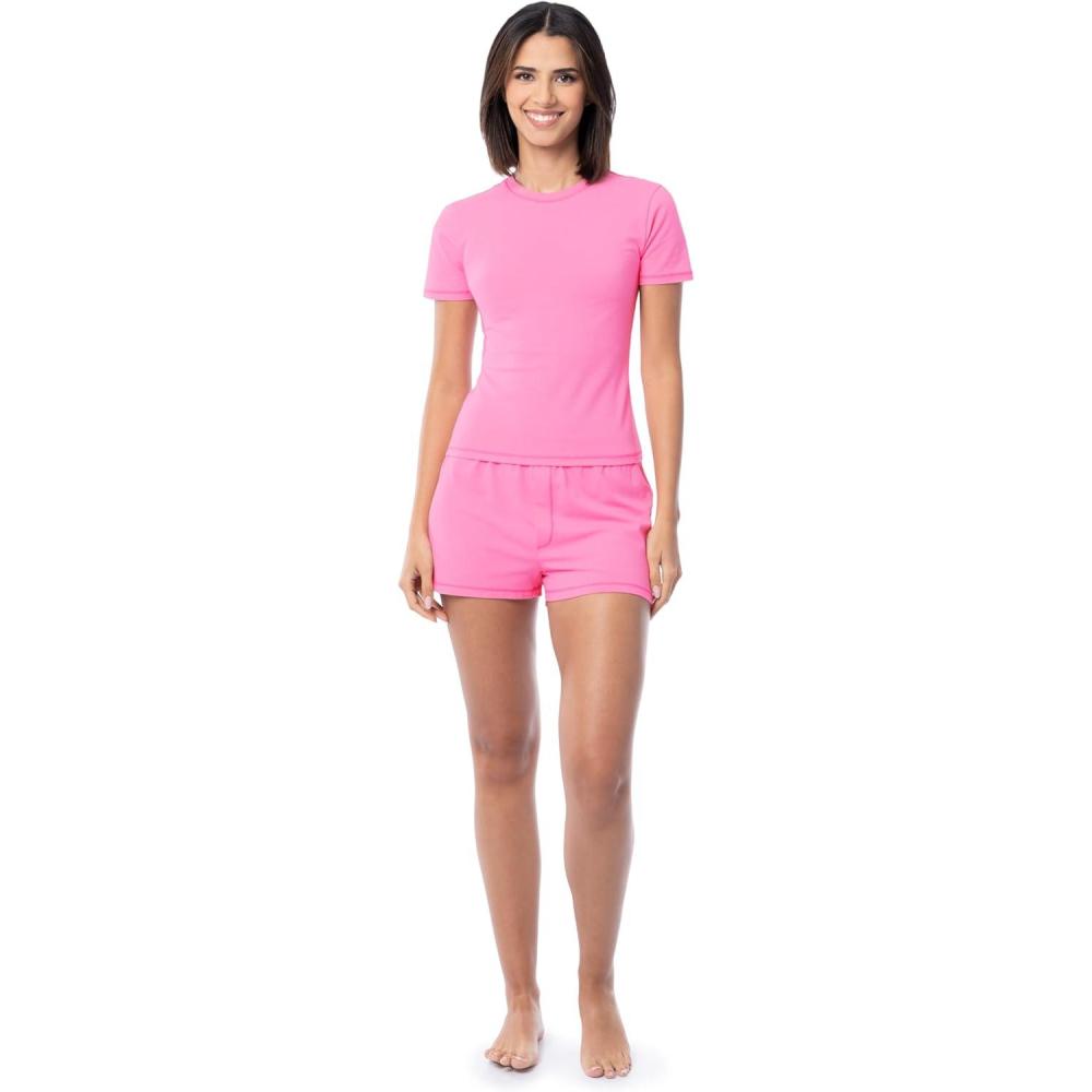 Fruit of the Loom Women’s Energize Sleeve Tee and Shorts Sleep Pajama Set(Rose)
