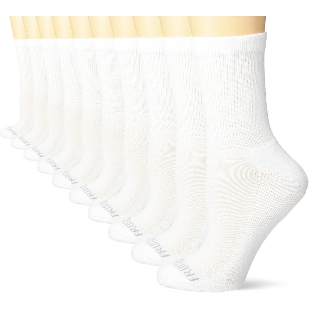 Fruit of the Loom women's crew socks with softer-than-ever polyester yarn for everyday comfort are a must-have for your collection. Made with thicker, padded cushioning for a more comfortable feel, this 10-pair value pack of socks for women now features moisture wicking to keep feet drier. Spandex is knitted throughout for the perfect amount of stretch and a better fit. Feel the softness and look good with classic Fruit of the Loom basic colors that are perfect for any occasion.
