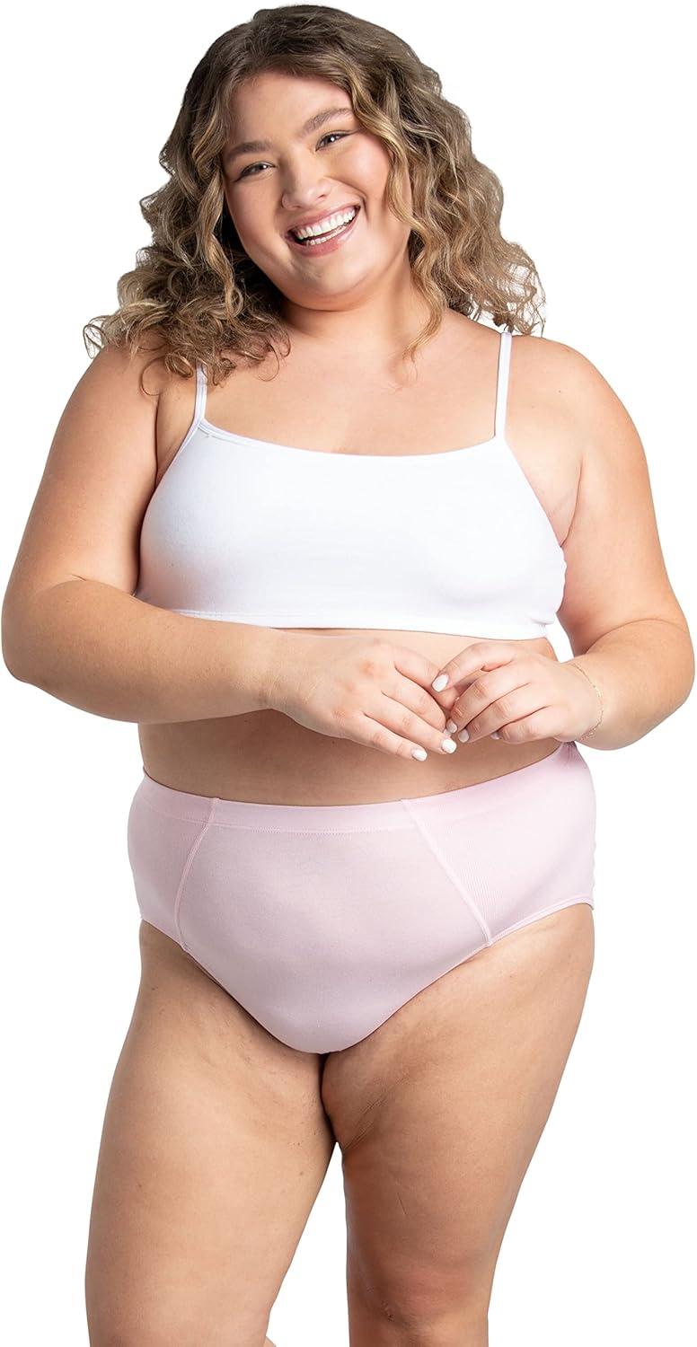These fit for me flexible fit briefs are perfect for days when you need a little wiggle room! Designed for women with curves, You can feel confident that our fit for me panties will fit your shape and keep you feeling your best. Built for ultimate comfort, Their cotton spandex body provide extra stretch for all over comfort, and their rib flex side panels move as you do. A Comfort-covered waistband feels soft against your skin and enhances flexibility. As always, our Fruit of the Loom panties are tag free and made with a 100% cotton liner for added softness. The classic brief silhouette sits just below the belly button and offers full seat coverage.