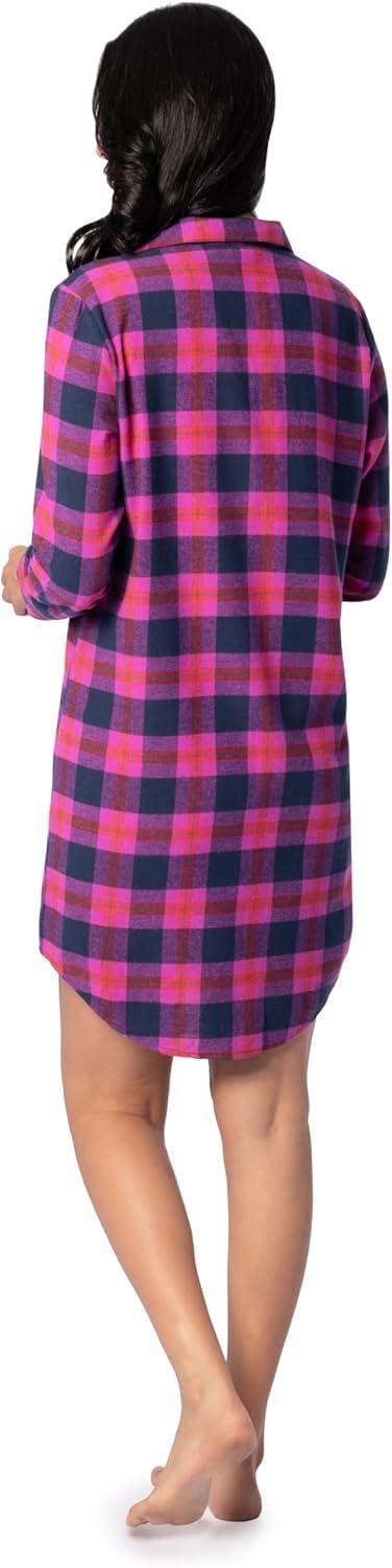 For easy all-night comfort with the right amount of warmth, this Ladies’ Flannel Sleep Shirt from Fruit of the Loom offers unmatched styling, practicality, and overall cozy comfort. The extra-soft flannel fabric provides the warmth you need on chilly nights or while leisurely lounging at home with the family. Button-down front paired with classic V neckline and collar gives it a classic styling, paired with cuffed long sleeves for extra warmth and handy left-chest pocket. Its rounded bottom hem fits above the knee and allows for a relaxed fit that would restrict your movements.