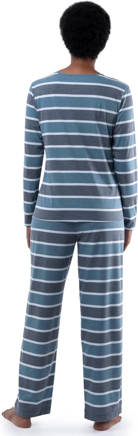 Fruit of the Loom Women’s Long Sleeve Tee and Pant 2 Piece Sleep Set(Blue Stripe)