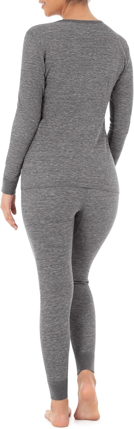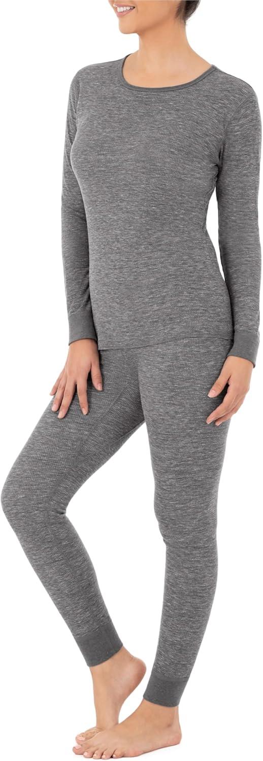 As the days gets chillier, make sure you have enough thermal underwear to keep you warm throughout winter. This Fruit of the Loom women’s thermal long-sleeve crew tee and long underwear is a great value to replenish your winter wardrobe. Made from an extra soft poly/cotton micro waffle fabric, these women’s base layers have a bulk-free fitted style with a spandex/rib crew-neck that stays flat, perfect for layering and extra warmth. All built for protection, performance, and utmost comfort in cold to moderately cold conditions. The fabric’s micro waffle weaves create small air pockets that hold heat next to the body, and the rib cuffs at the wrists ensure that heat stays trapped in as much as possible to keep you comfortable all day long. Additional features like a tag-free neck label and flat seams prevent chafing, enhancing overall comfort. Available in various colors, your style will never be compromised, and available plus sizes ensure you’ll find the size that fits you. When looking for foundational warmth, comfort, and lightweight performance, look no further than this thermal long underwear set.