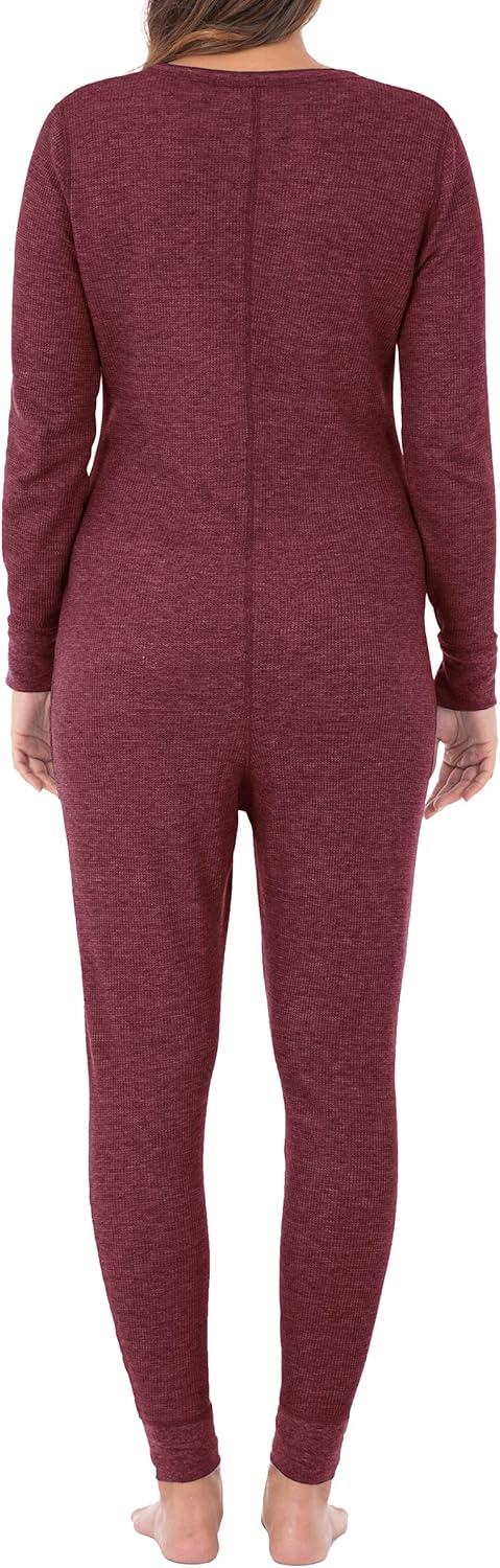 Fruit of the Loom womens Micro Waffle Premium Thermal Union Suit(Merlot Heather)