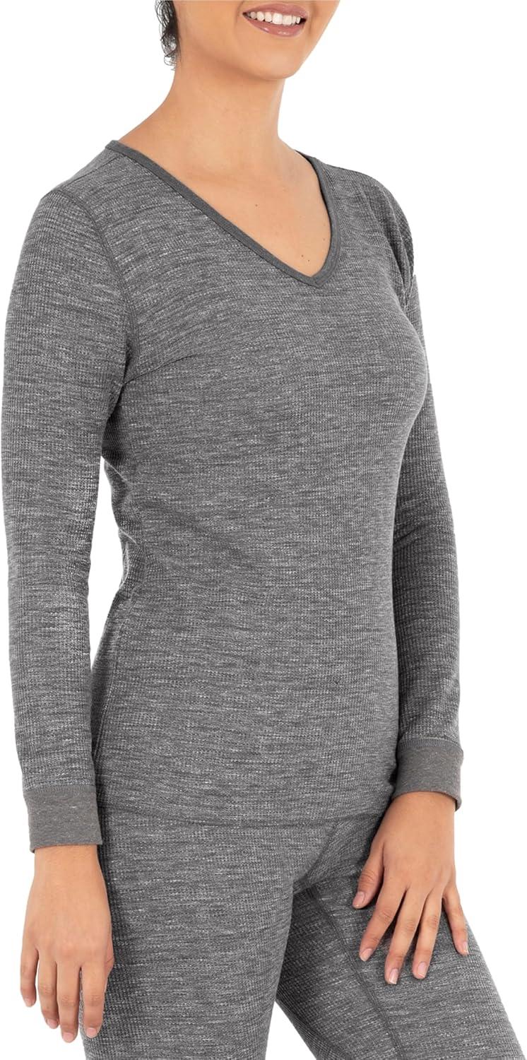 Fruit of the Loom Women’s Micro Waffle Thermal V-Neck(Smoke Heather)