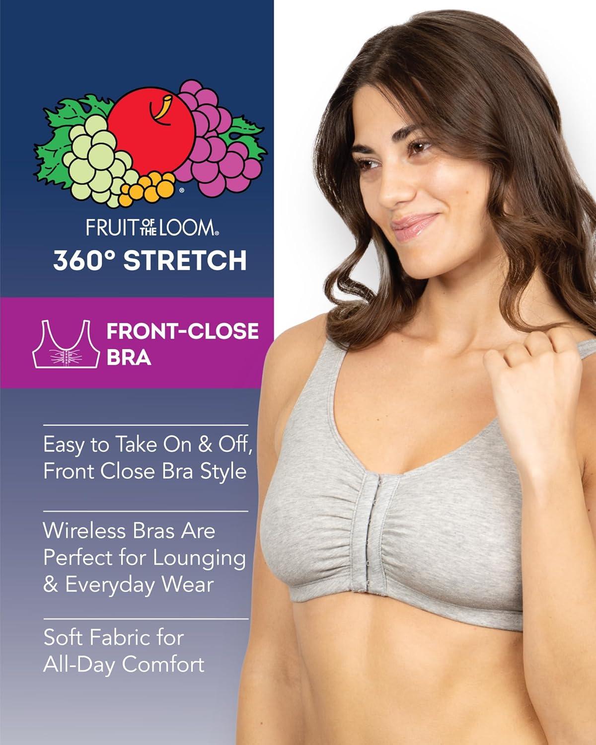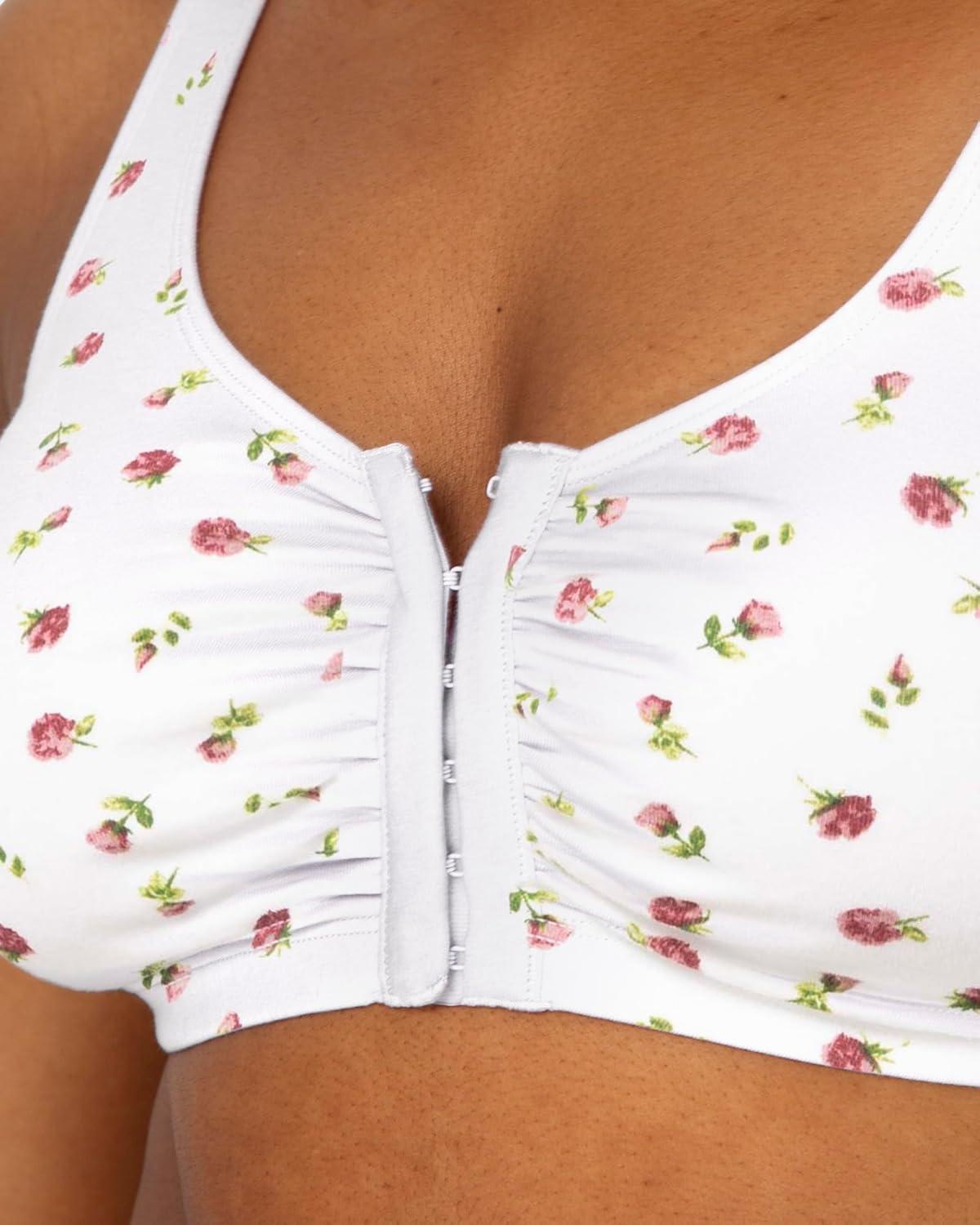 Fruit of the Loom Women’s Multi-Pack Front Closure Cotton Bra(Dancing Rosebuds/Lilas/Grey)