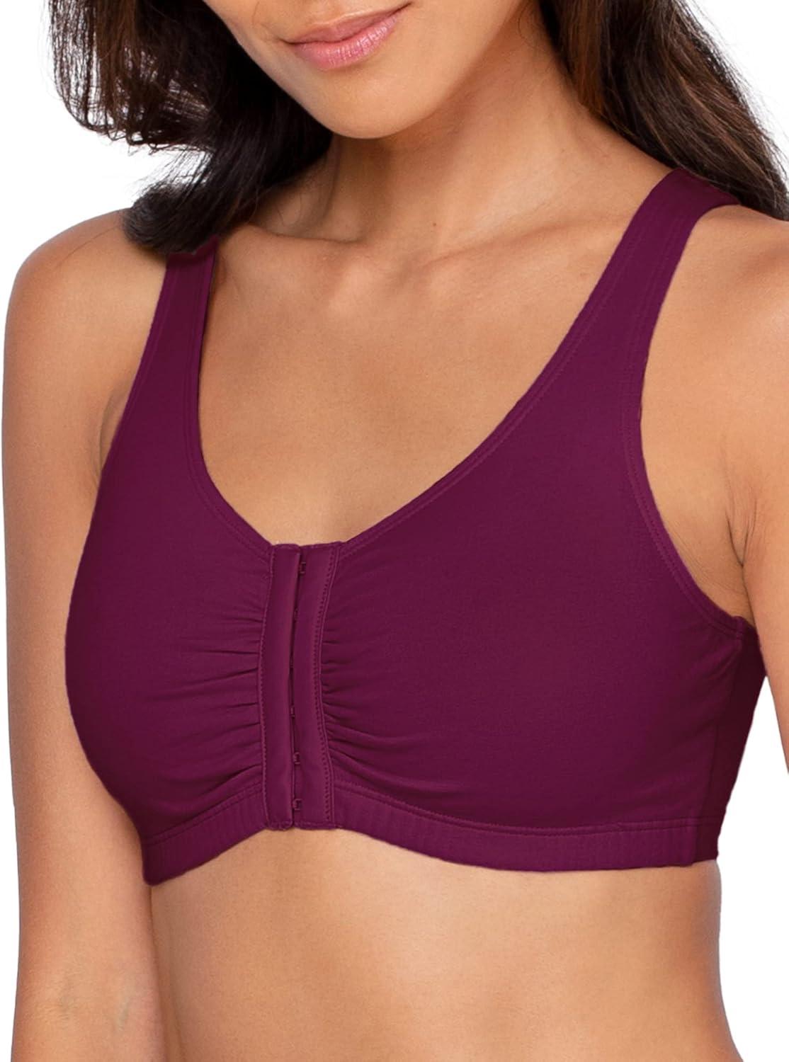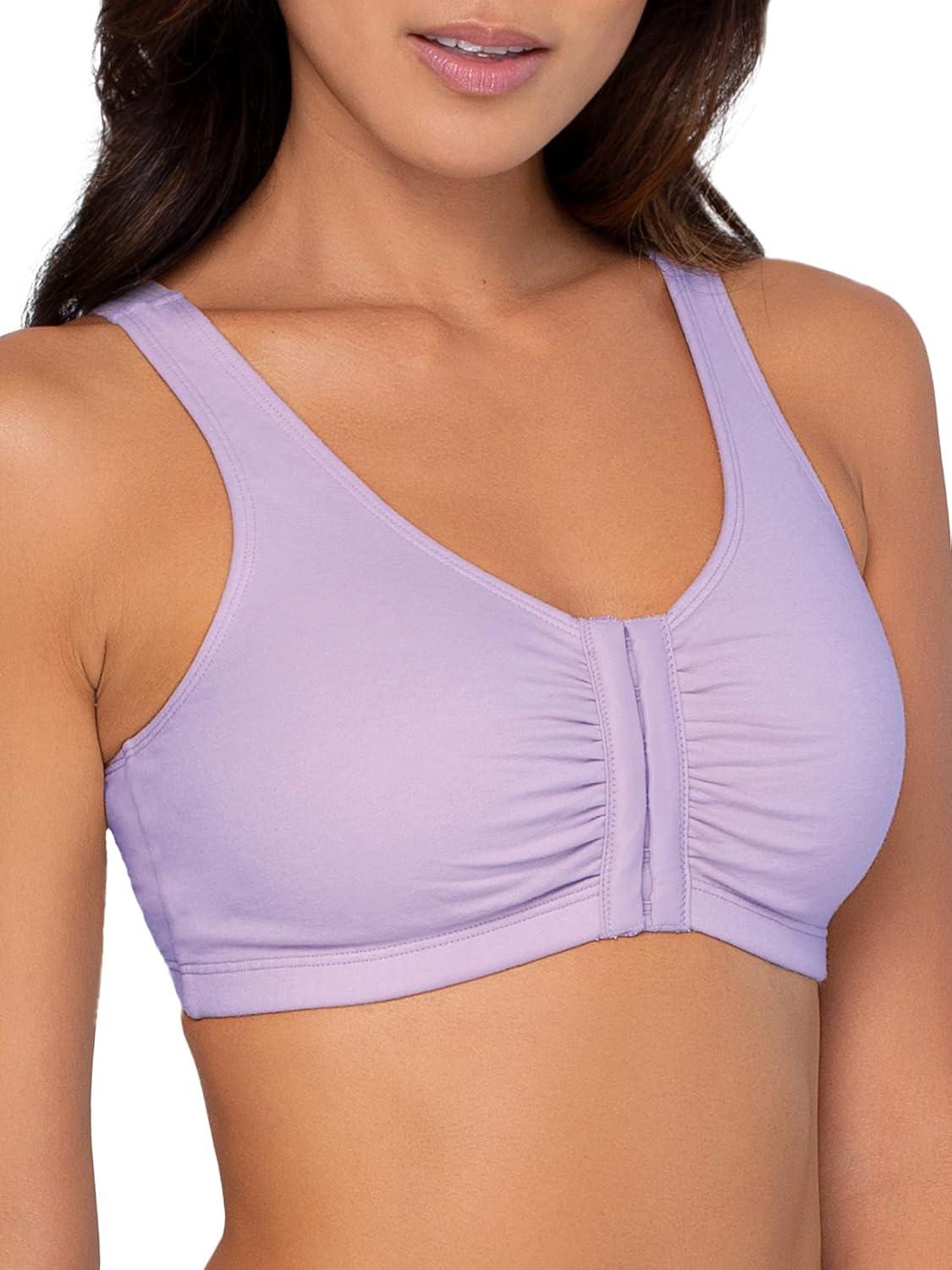 Fruit of the Loom Women’s Multi-Pack Front Closure Cotton Bra(Lilac Whisper/White/Purple Velvet)