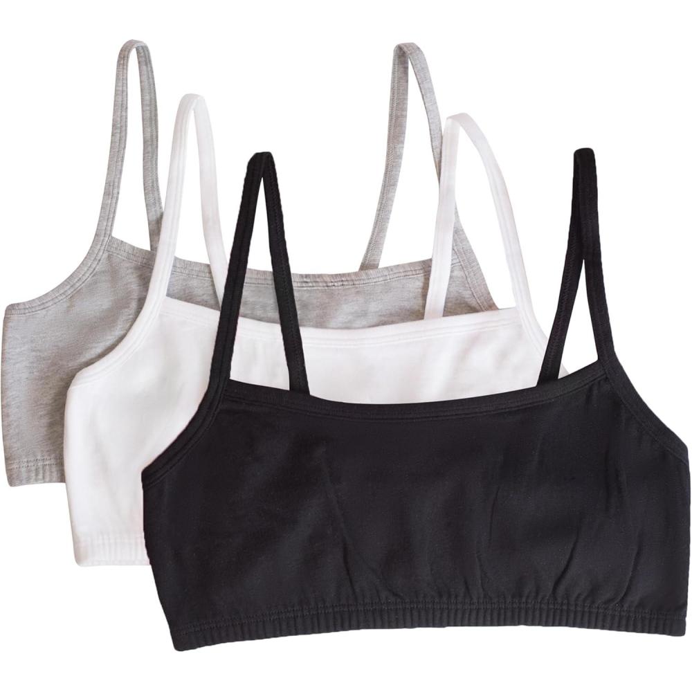 Fruit of the Loom Women’s Multi-Pack Spaghetti Strap Cotton Sports Bra(Black/White/Heather Grey)
