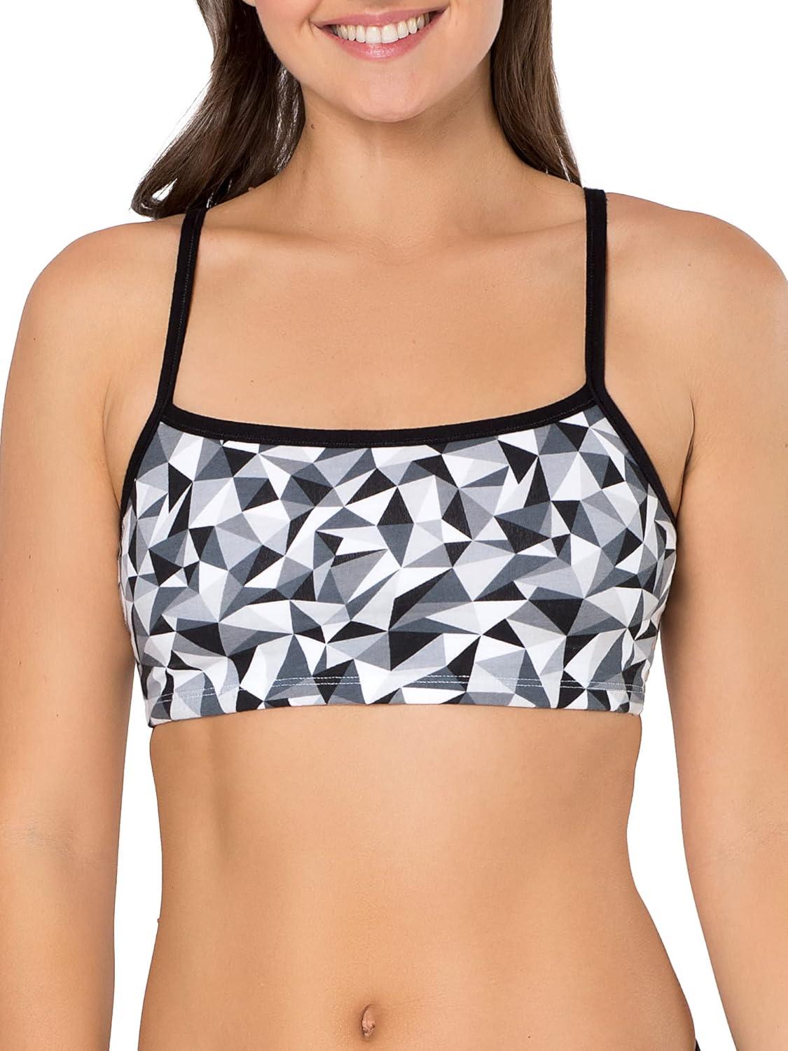 Fruit of the Loom Women’s Multi-Pack Spaghetti Strap Cotton Sports Bra(Kaleidoscope/Charcoal/Red Hot)