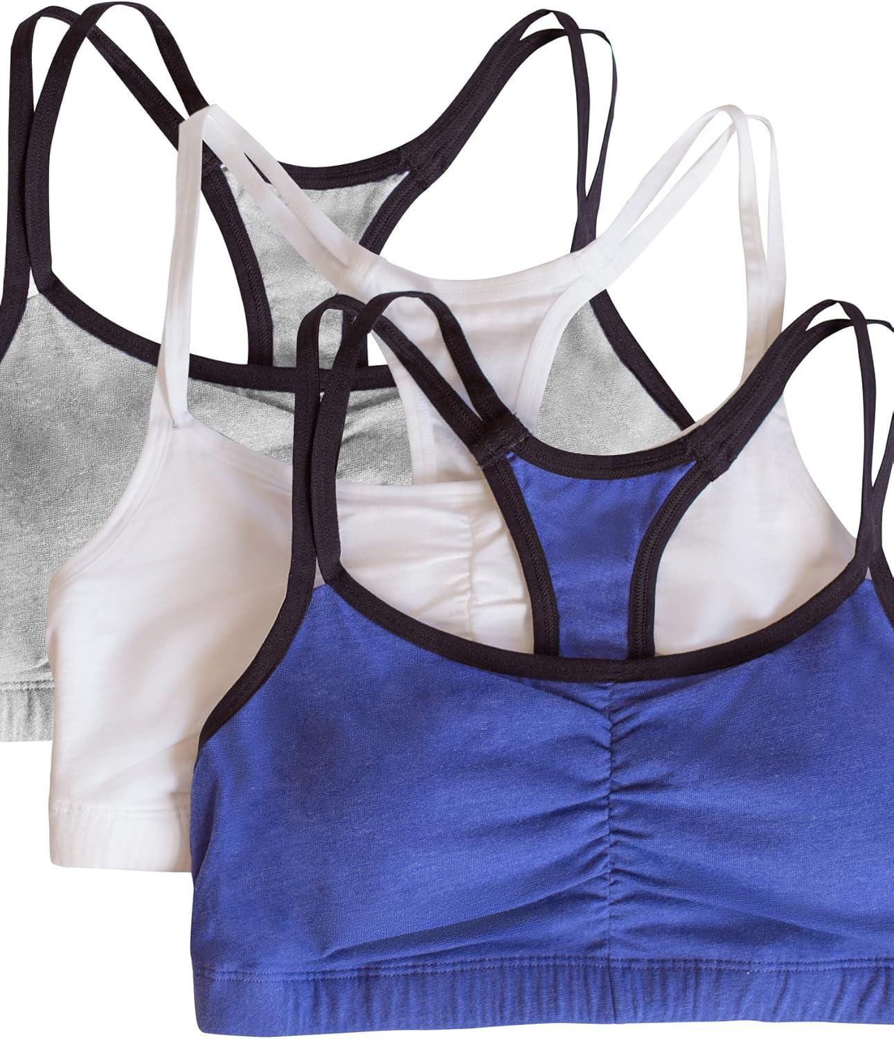 Fruit of the Loom Women’s Multi-Pack Spaghetti Strap Cotton Sports Bra(Navy Heather/White/Grey Heather)