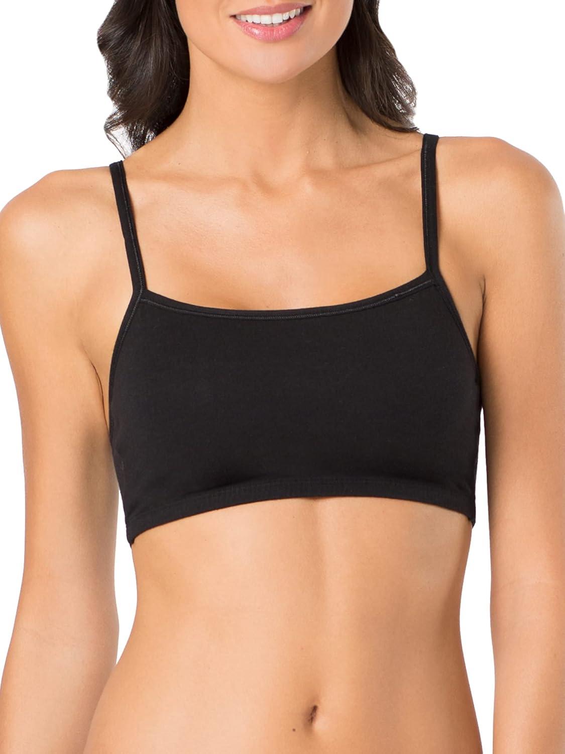 Fruit of the Loom Women’s Multi-Pack Spaghetti Strap Cotton Sports Bra(Skinny Stripe/Black Hue/Red Hot)