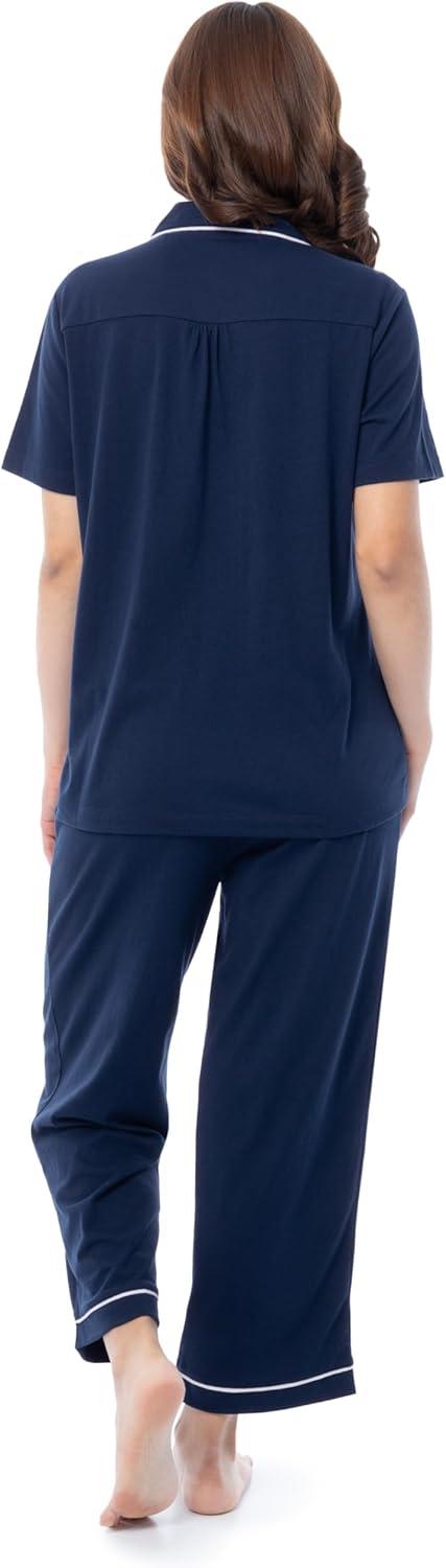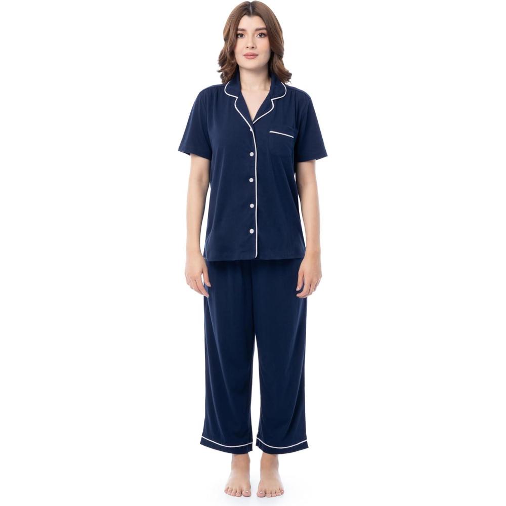 Fruit of the Loom Women's Pipped Button Down Sleep Set(Navy)
