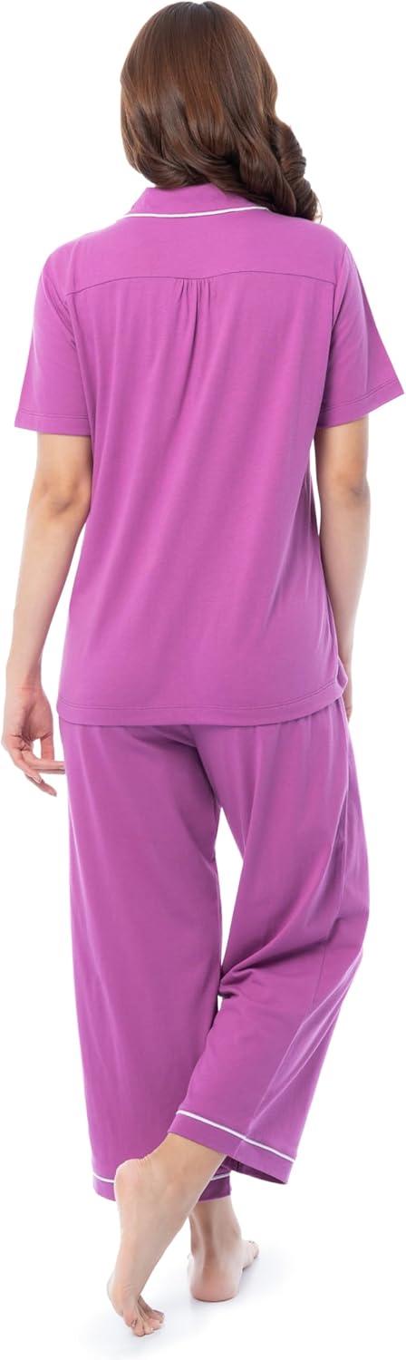 Unwind in ultimate comfort and timeless style with the Fruit of the Loom Women's Piped Button-Down Pajama Set. This two-piece set includes a button-front top with a convenient chest pocket and a relaxed, cropped wide-leg pant. Crafted for maximum comfort, the soft, breathable fabric ensures you stay cozy throughout the night, while the covered elastic waistband provides a secure yet flexible fit. Designed for a smooth, irritation-free experience, this pajama set is perfect for lounging at home or enjoying a peaceful night’s sleep.