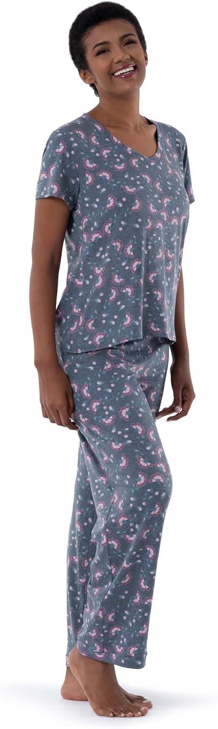 Fruit of the Loom Women's Short Sleeve Tee and Pant 2 Piece Sleep Pajama Set(Floral)
