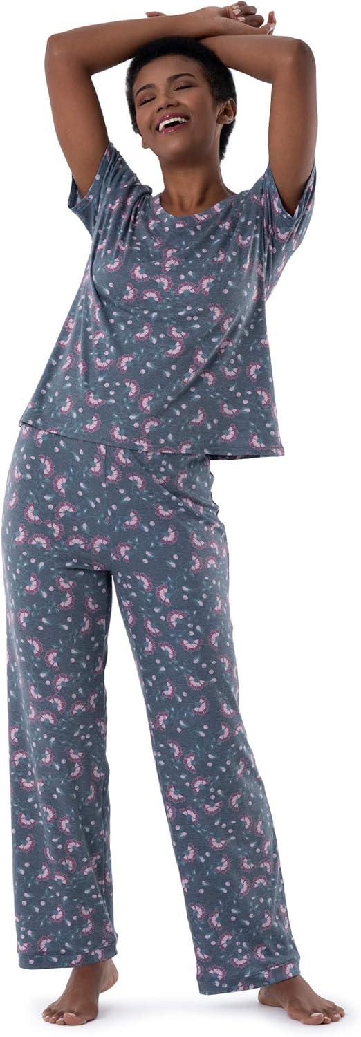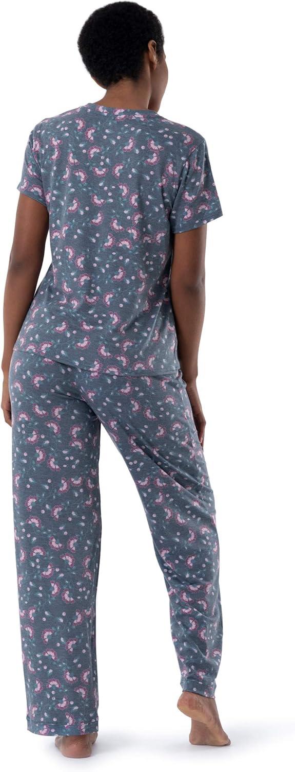 Fruit of the Loom Women’s Short Sleeve Tee and Pant 2 Piece Sleep Pajama Set(Floral)