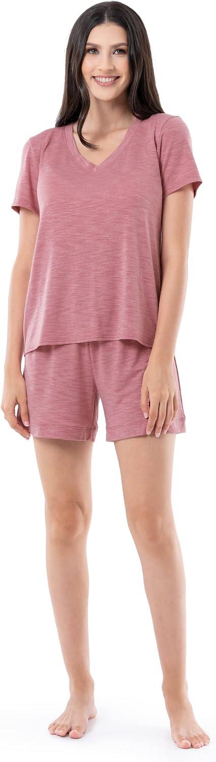 Fruit of the Loom Women’s Short Sleeve Tee and Short 2 Piece Sleep Set(Antique Heather Blush)