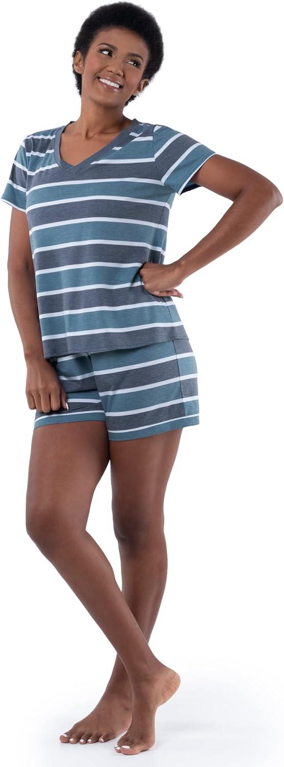 Wake up feeling restored and comfy in this Fruit of the Loom ladies short sleeve tee and short 2 piece set. This sleepwear set is made of a jersey knit fabric that is super soft and breathable providing you with ultimate comfort that will have you drifting off to sleep in no time. It's lightweight and relaxed fit will keep you feeling comfortable whether your heading to bed or enjoying a lazy day at home. This 2 piece set includes a v-neck short sleeve tee and pull on shorts with an elastic waistband. Style yourself in this delectably soft and breathable sleepwear set that will help you end and start your day in comfort.