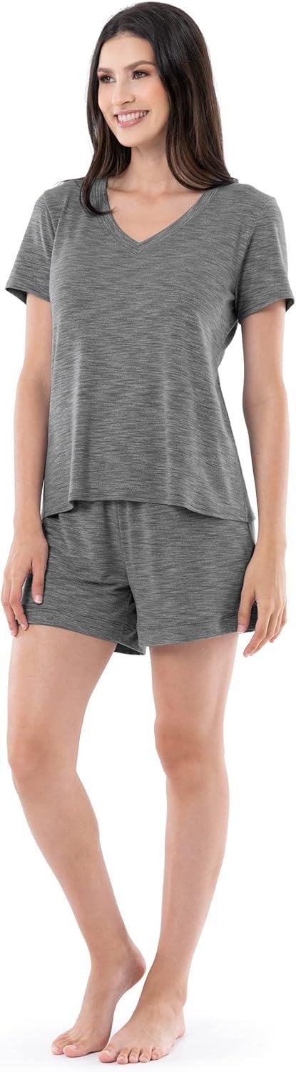 Fruit of the Loom Women's Short Sleeve Tee and Short 2 Piece Sleep Set(Heather Grey)