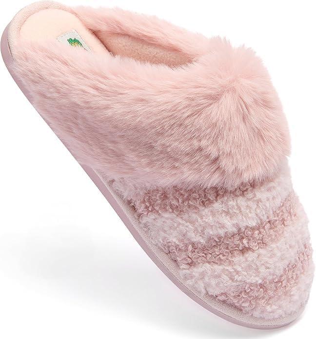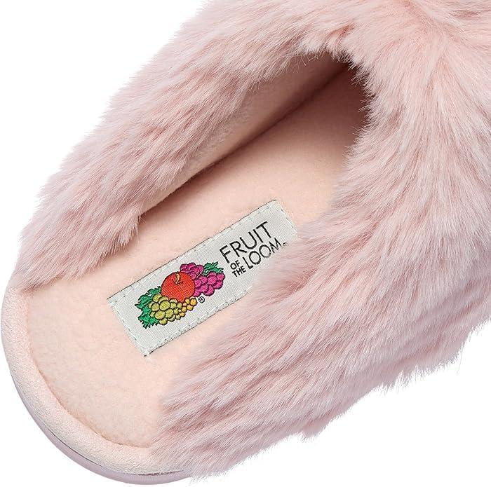 imageFruit of the Loom Womens Slipper Zapatos Cmodos Stripe Feather WFur Cuff Clog Memory FoamBlush