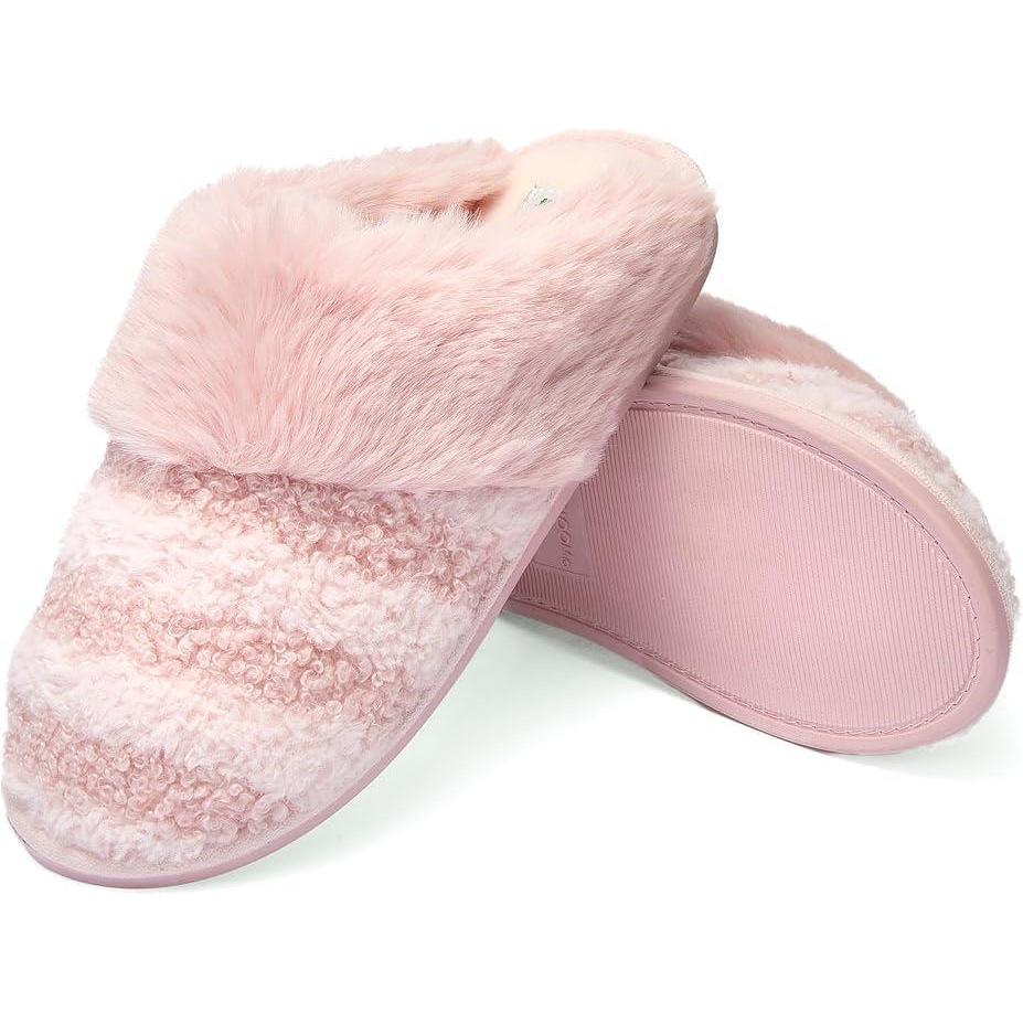 Fruit of the Loom Women's Slipper, Zapatos Cómodos, Stripe Feather W/Fur Cuff Clog, Memory Foam(Blush)