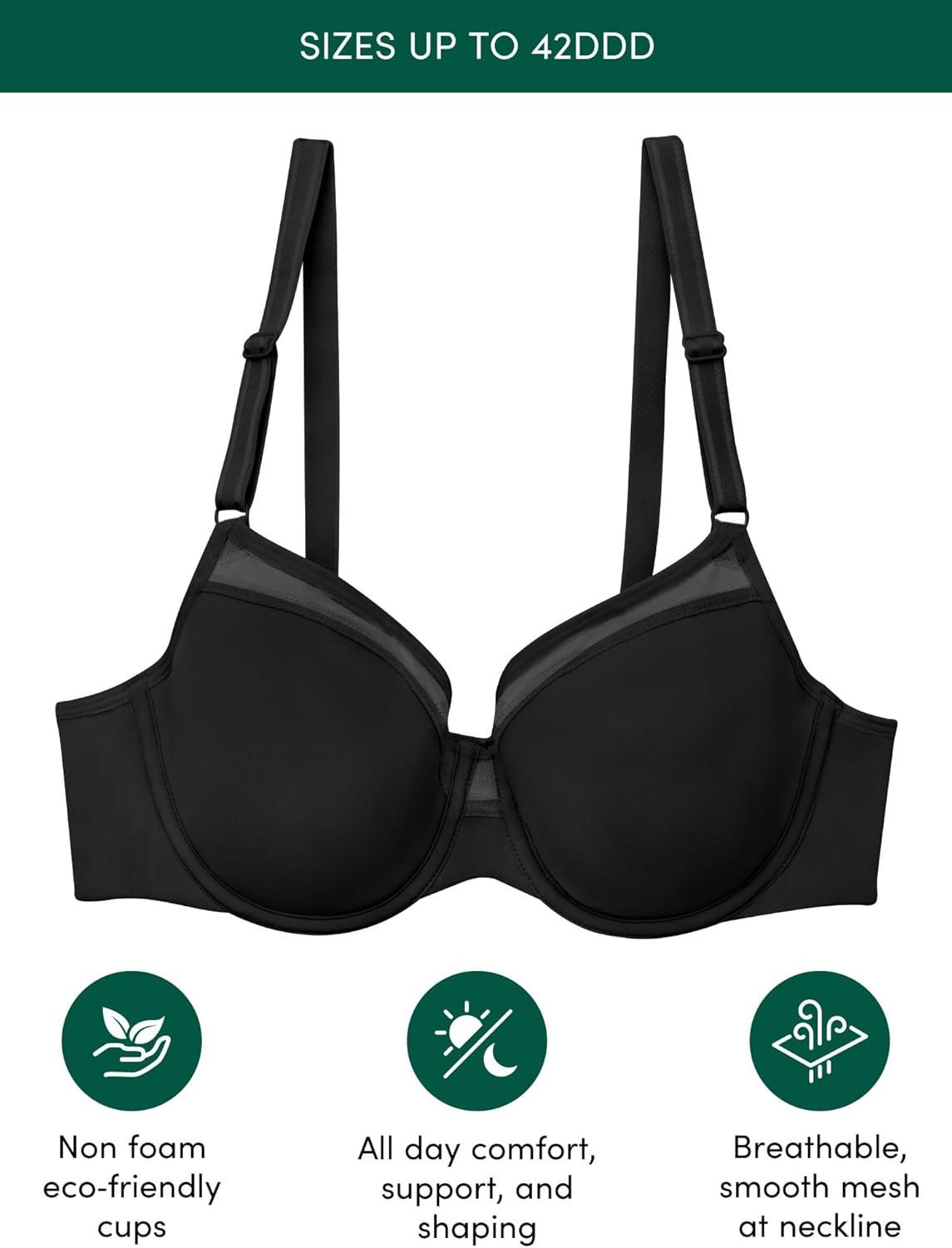 Breathe easy with the Fruit of the Loom Women’s Breathable Spacer T-Shirt Bra, designed to exceed your expectations. A lightweight and breathable alternative to foam cups, innovative spacer cups are eco-friendly and your daily support squad, all in one! And that sheer neckline? It's here to keep you confidently covered 'round the clock. No more compromise between style and functionality – this bra’s inner sling and smoothing, double lined wings shape and smooth without adding any extra bulk. We've got your back (and your front), literally! Our bra features adjustable front straps and an extended back hook-and-eye closure, making it a breeze to find your perfect fit. Experience for yourself the perfect balance of eco-conscious design and unmatched comfort with the Fruit of the Loom Women’s Breathable Spacer T-Shirt Bra.